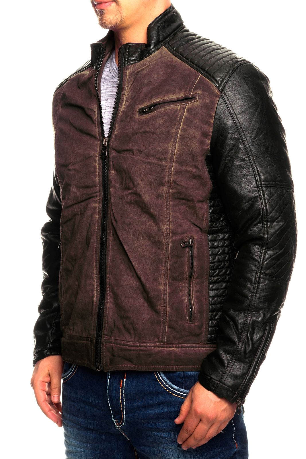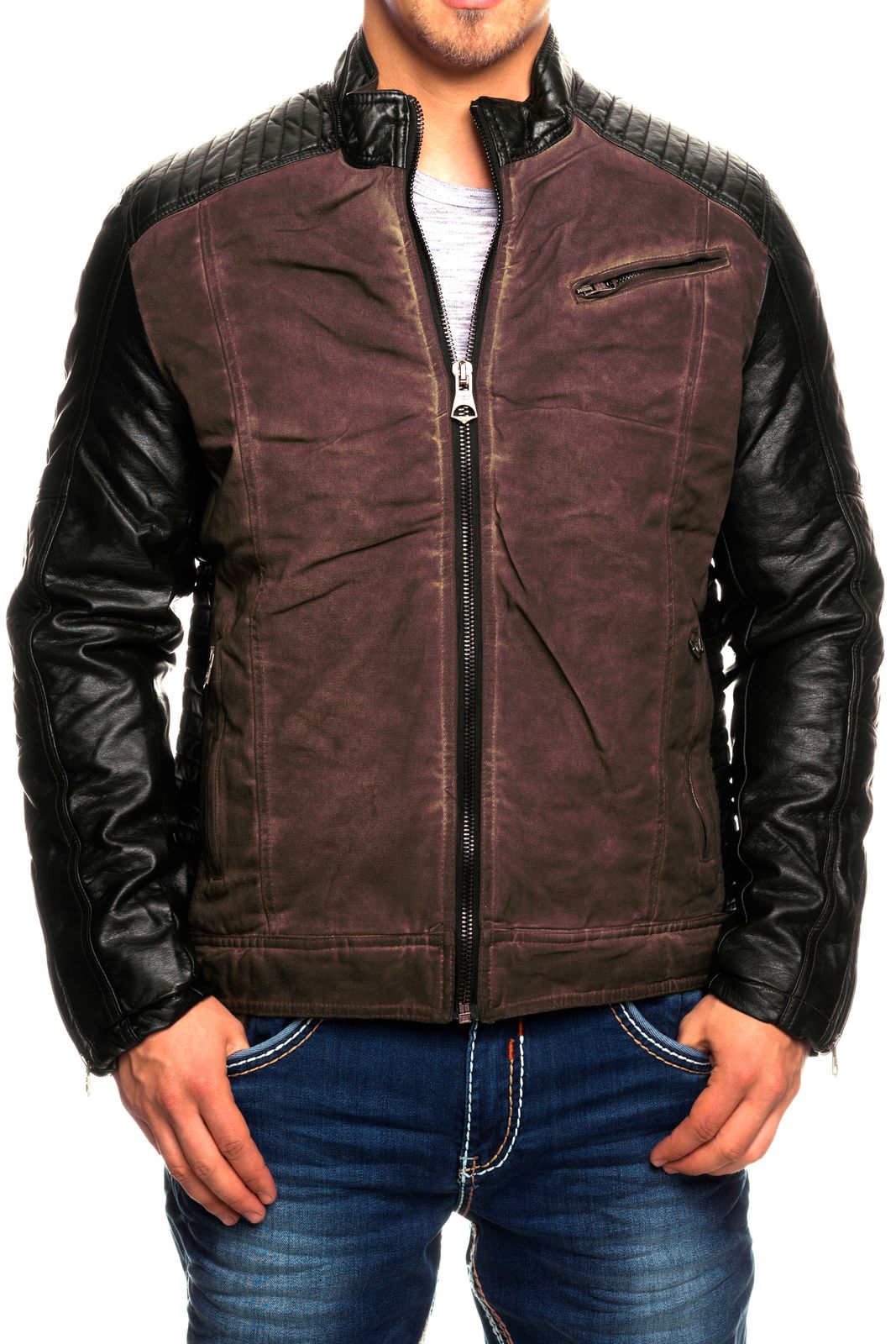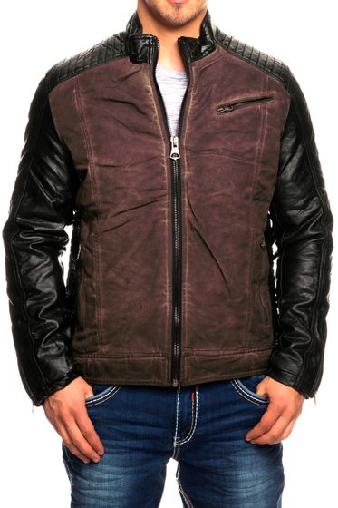 Chaqueta de motorista moderna para hombre, aspecto lavado, mangas de piel sintética, corte entallado, chaqueta de entretiempo, 8833 Burdeos