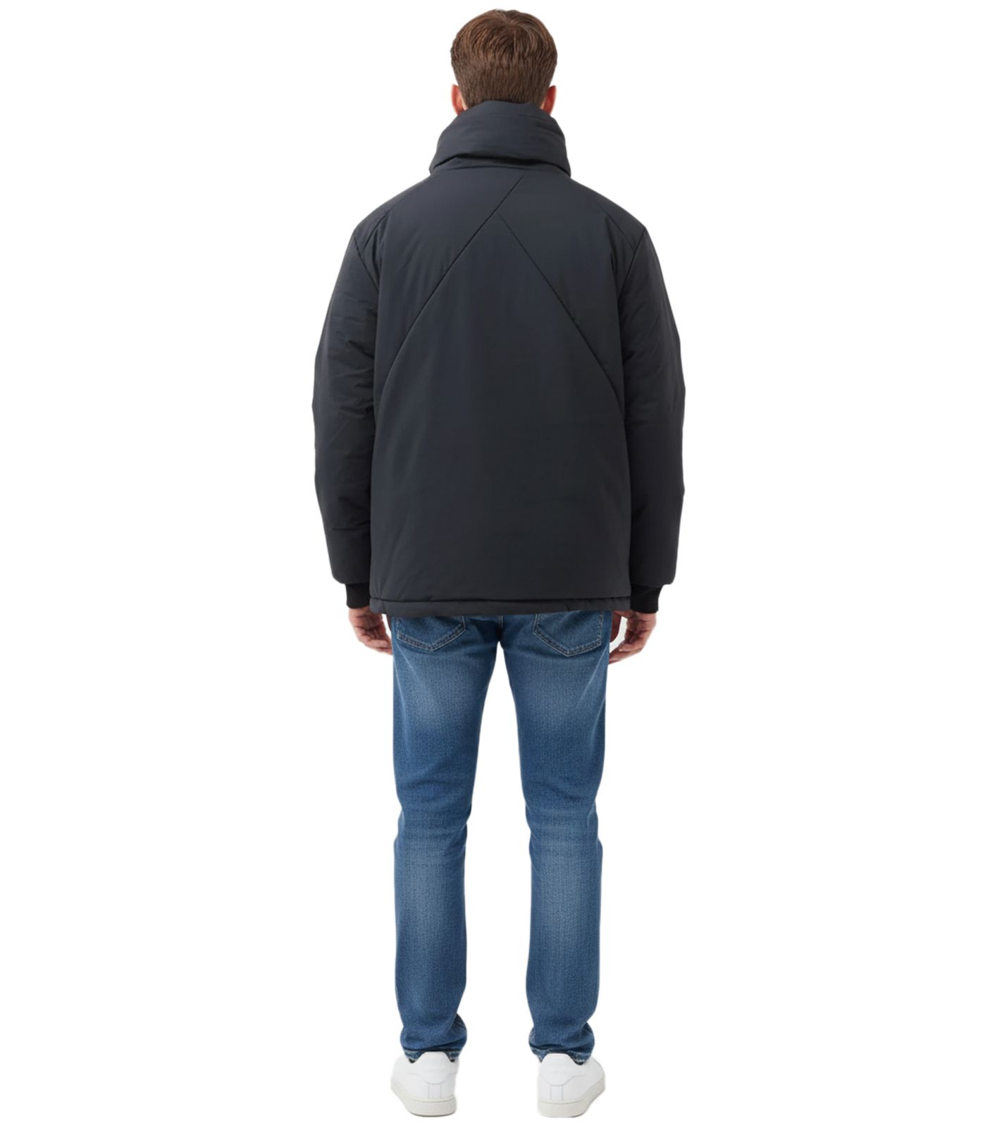 - Cuello alto forrado con capucha de emergencia integrada