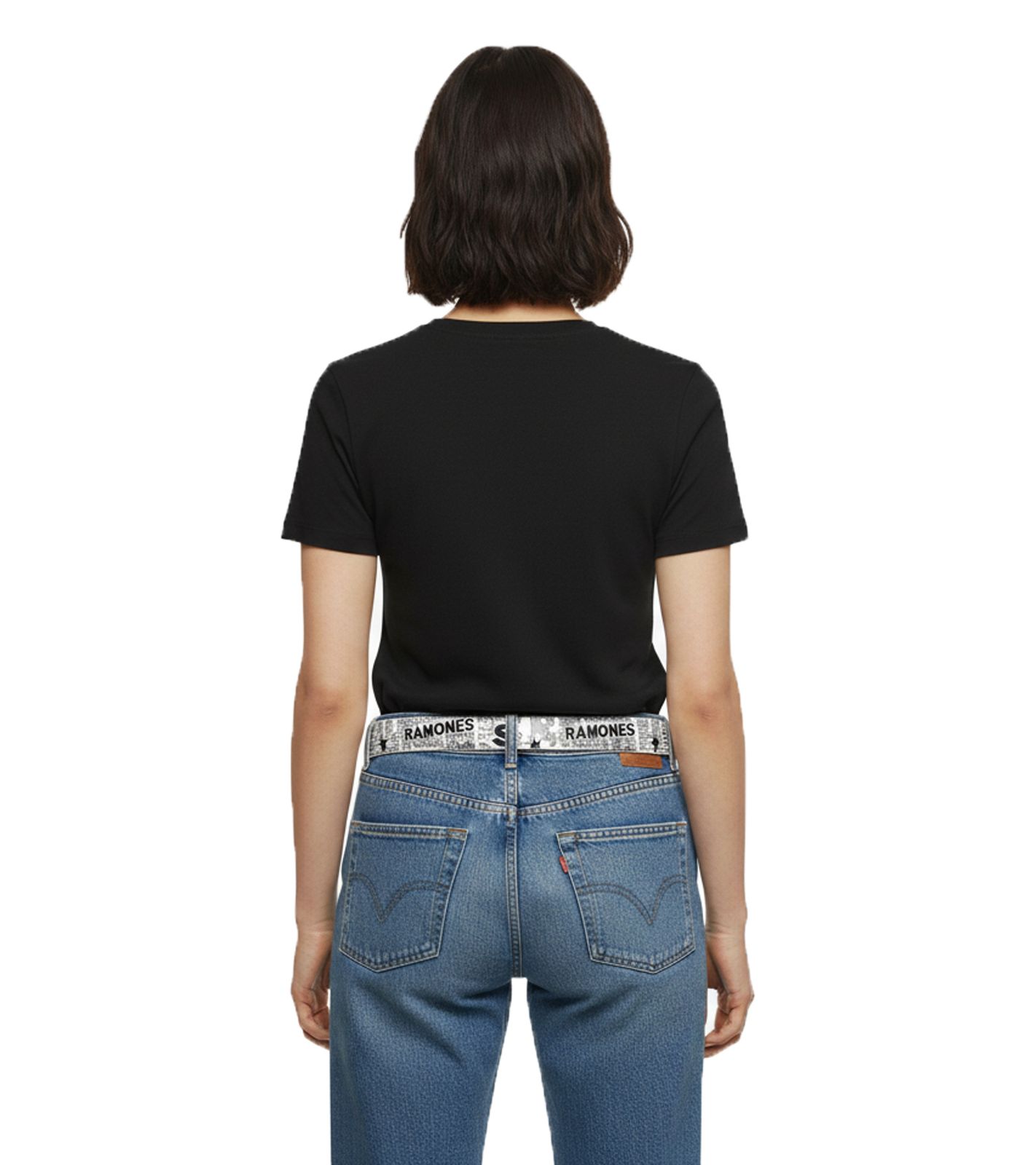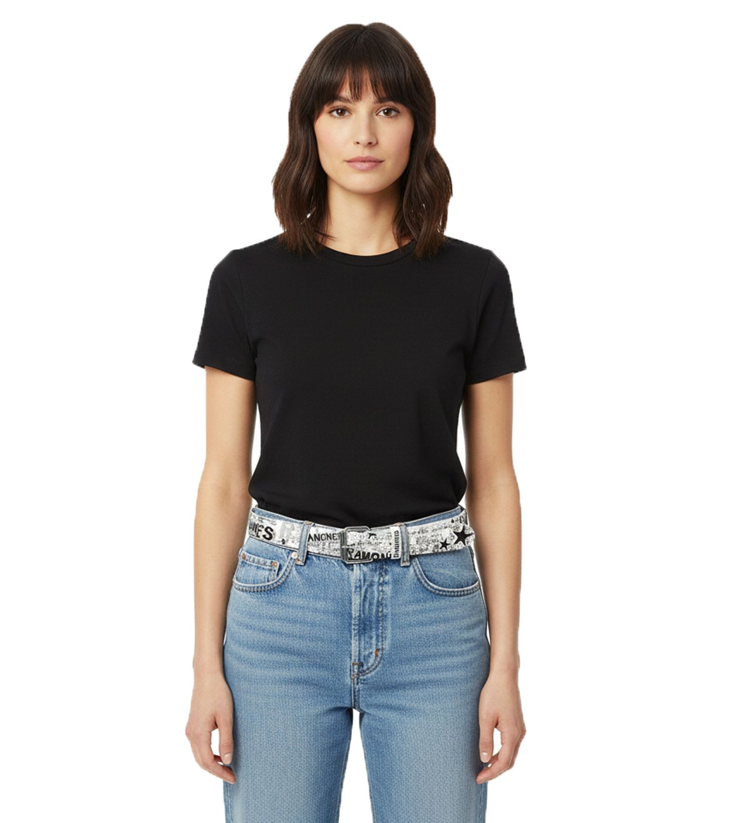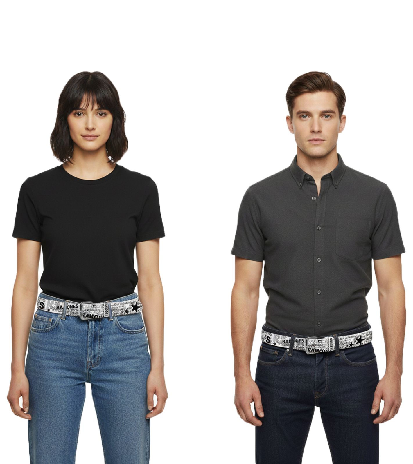 Cinturón RAMONES para mujer y hombre, 110 cm, Estampado de periódico, BT106126RAM4, Blanco