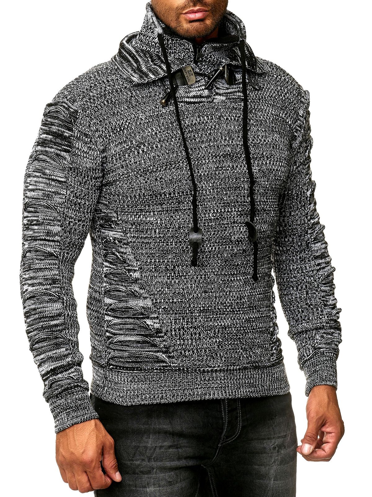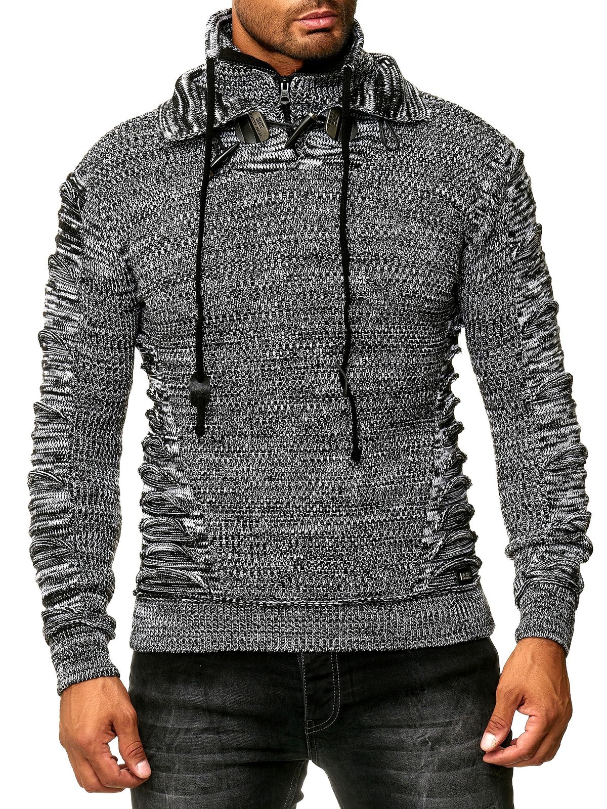 - Moderno suéter de punto grueso para hombre con un llamativo cuello alto que le da un look masculino