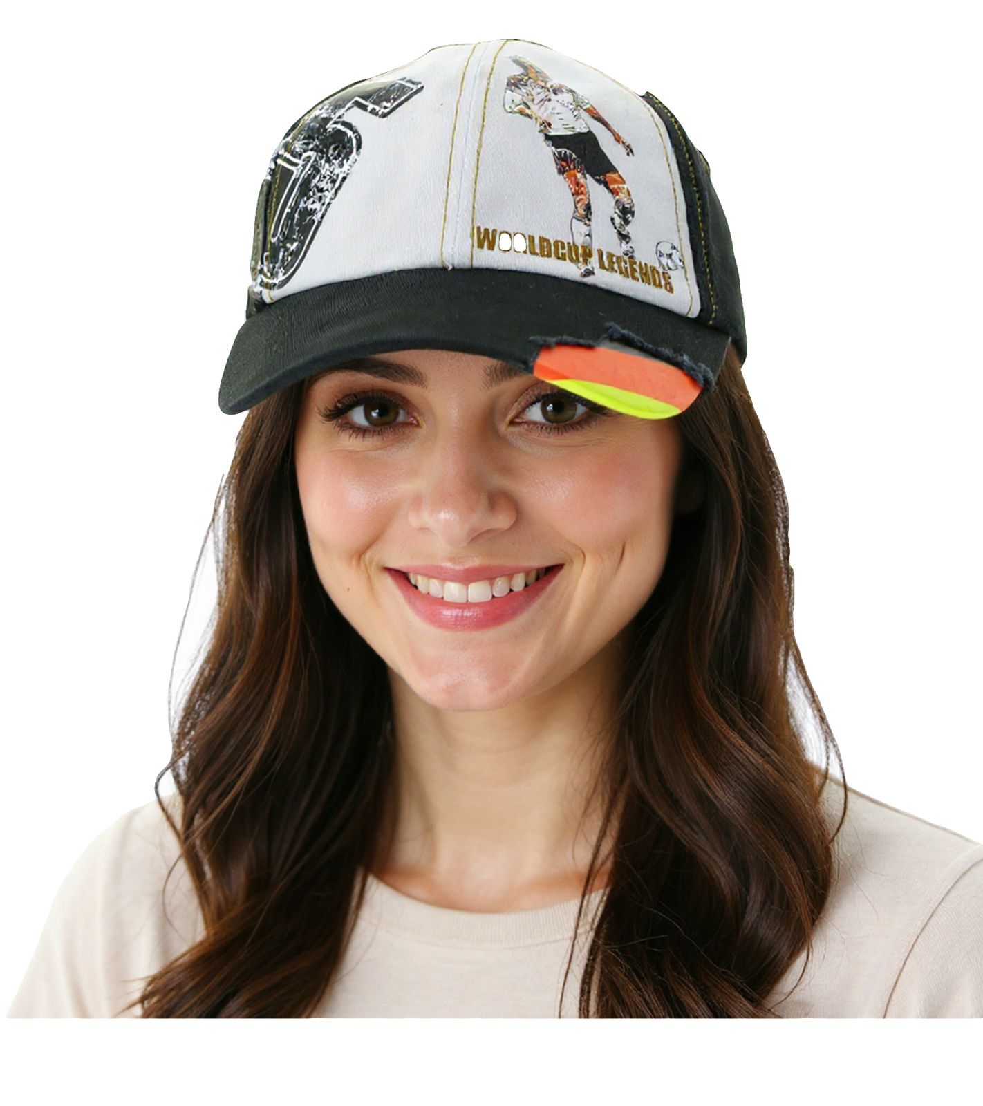 LEYENDAS DE LA COPA MUNDIAL Gorra de béisbol unisex con diseño de Brasil Gorra de algodón con estampado de jugador de fútbol Gorra con visera curva con estampado del número 9 Aspecto dañado TC123027WCL Amarillo/Multicolor