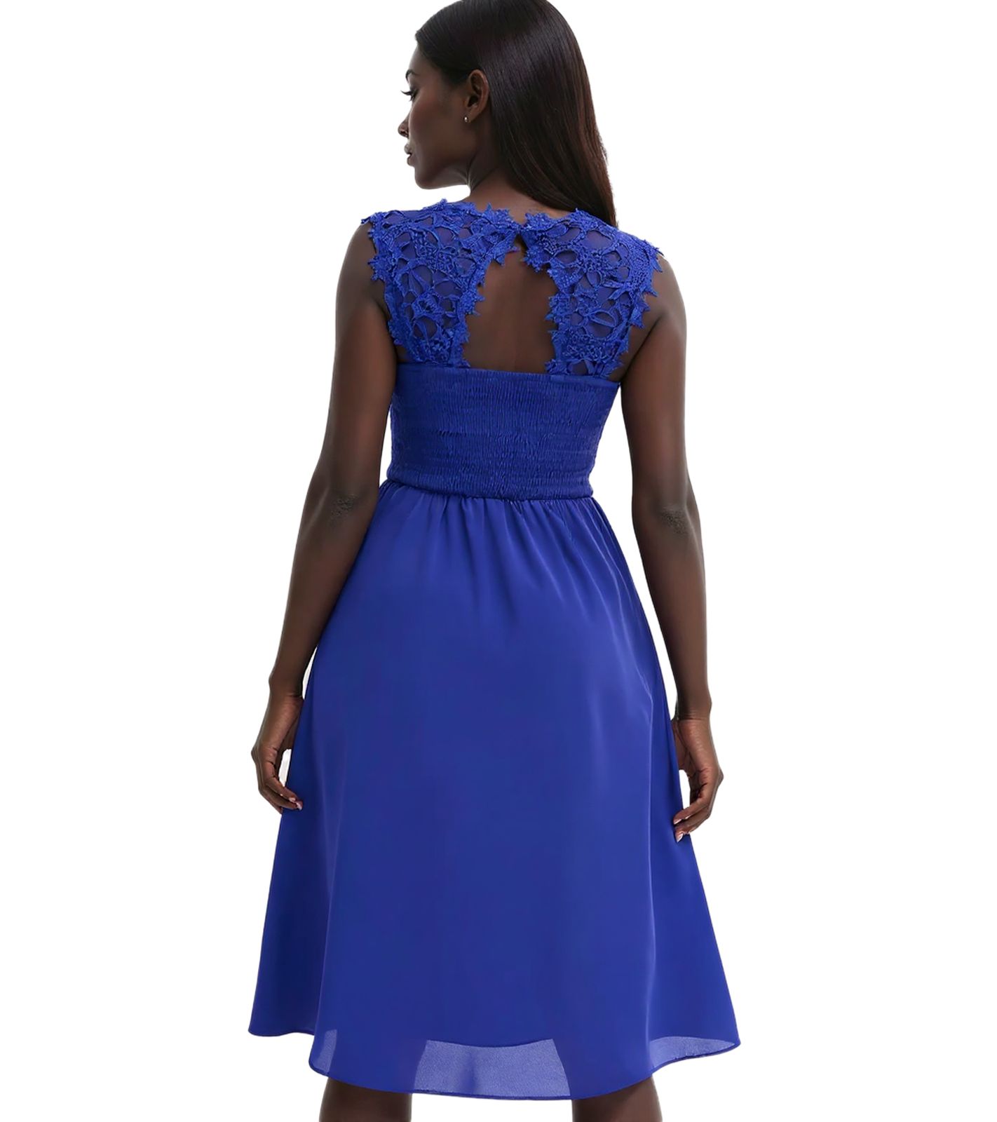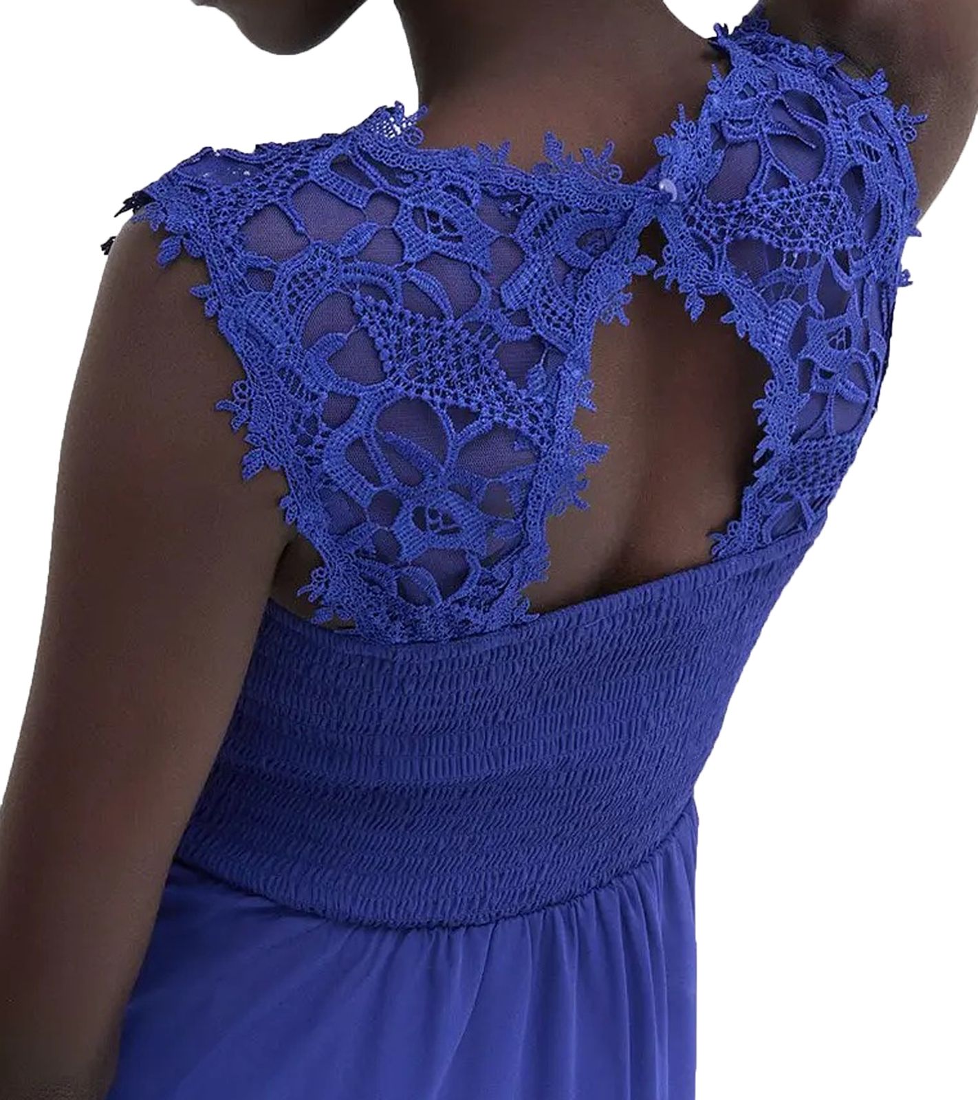 Pack de 2 vestidos de noche de ensueño para mujer con precioso encaje y ribete de crochet, minivestido 931026, azul