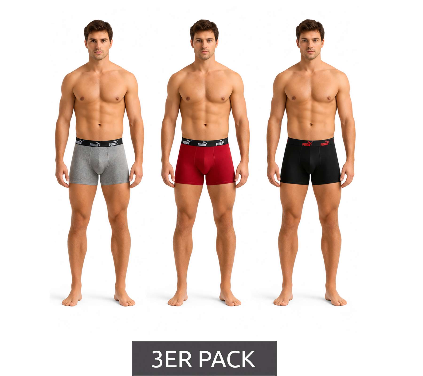 Pack de 3 bóxers básicos PUMA para hombre, ropa interior de algodón 100003547 4250 Rojo/Gris/Negro