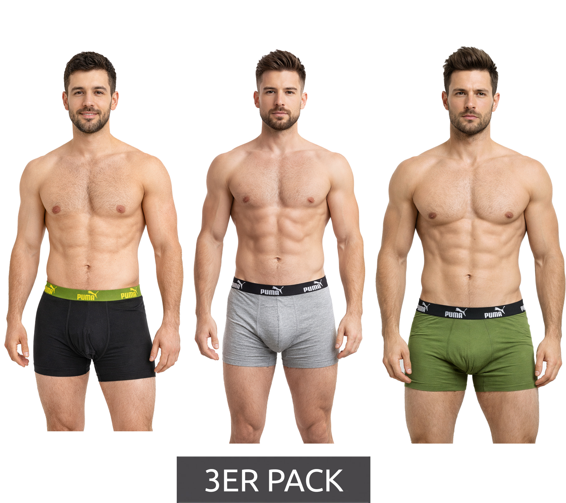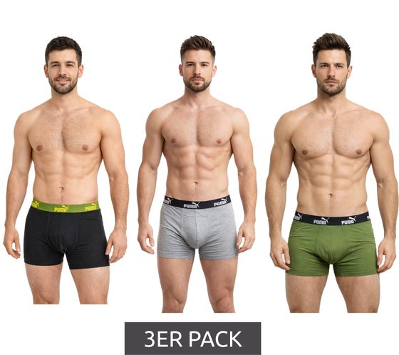 Pack de 3 bóxers básicos PUMA para hombre, ropa interior de algodón 701218254 004 Gris/Verde/Negro