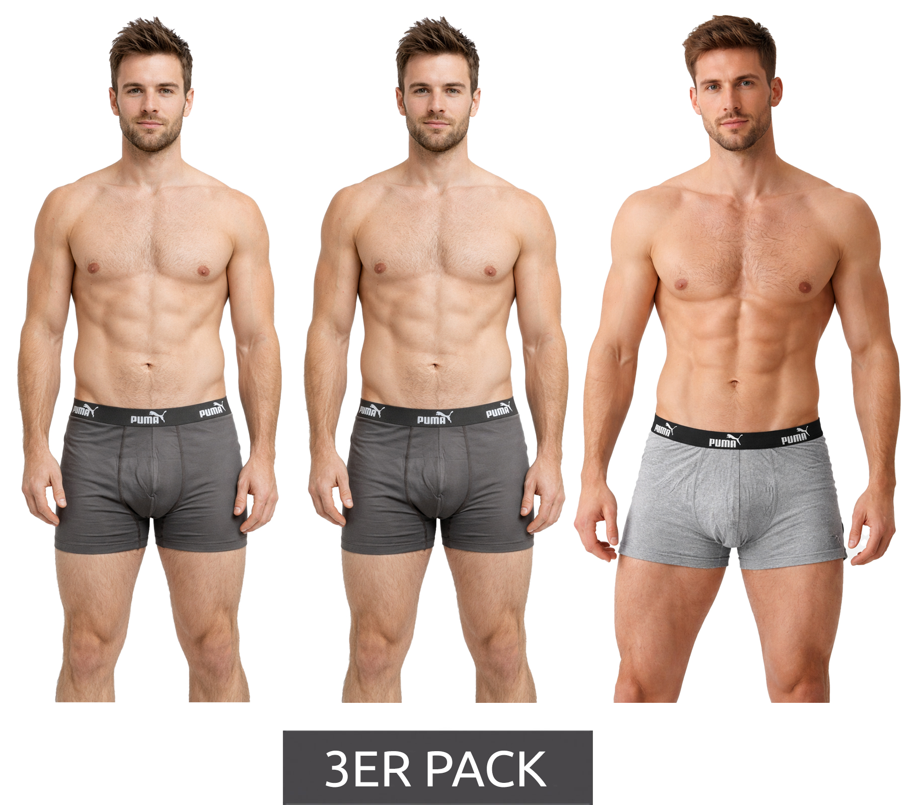 Pack de 3 bóxers básicos PUMA para hombre, ropa interior de algodón 701218254 007 Gris/Gris claro