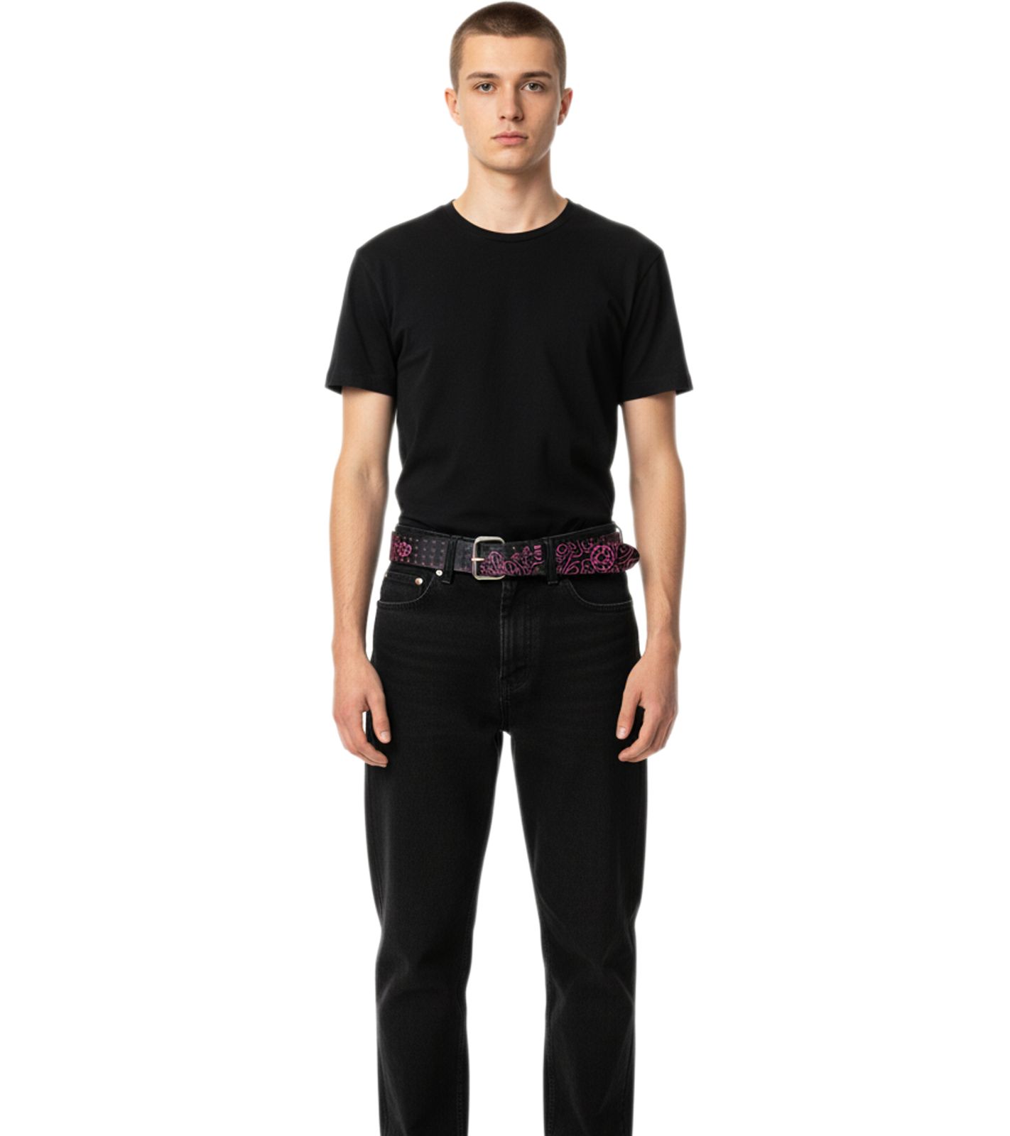 Pack de 3 cinturones HIM: Cinturones de piel auténtica con inscripción de la banda, elegante cinturón informal, negro/morado