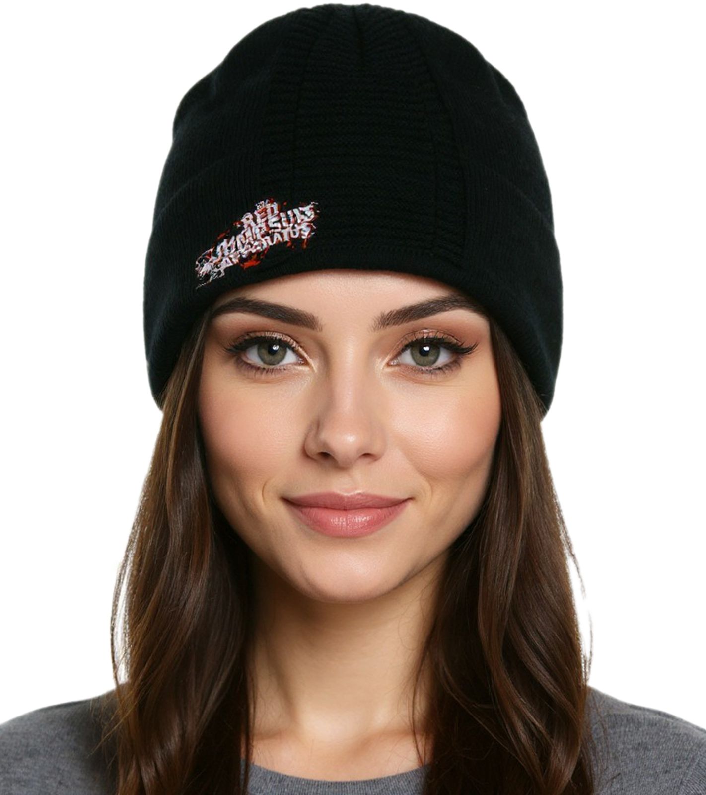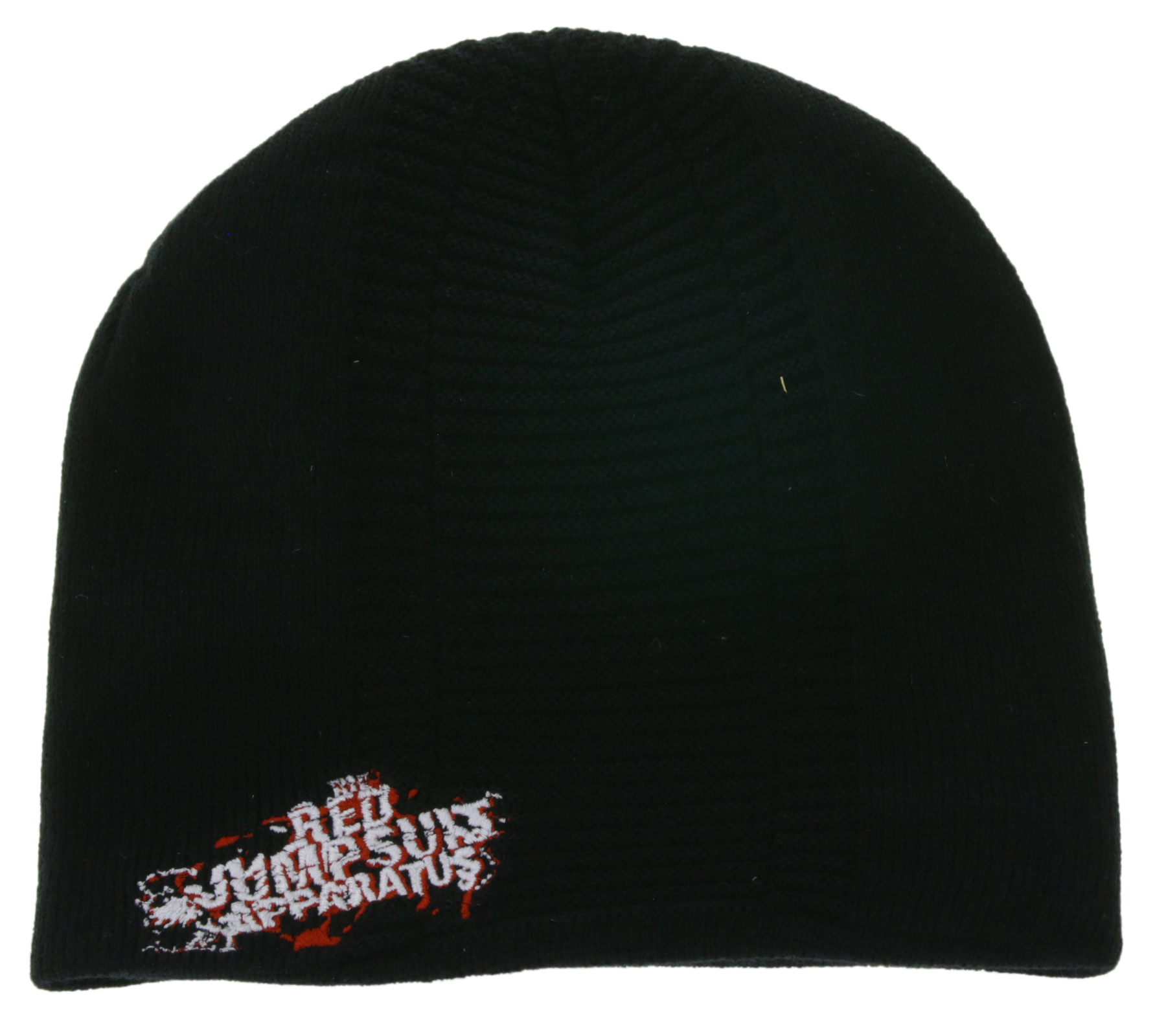 El llamativo logo rojo y blanco "RED JUMPSUIS APPARATUS" en tipografía estilo grafiti está bordado en la parte frontal, otorgándole al gorro su carácter distintivo.