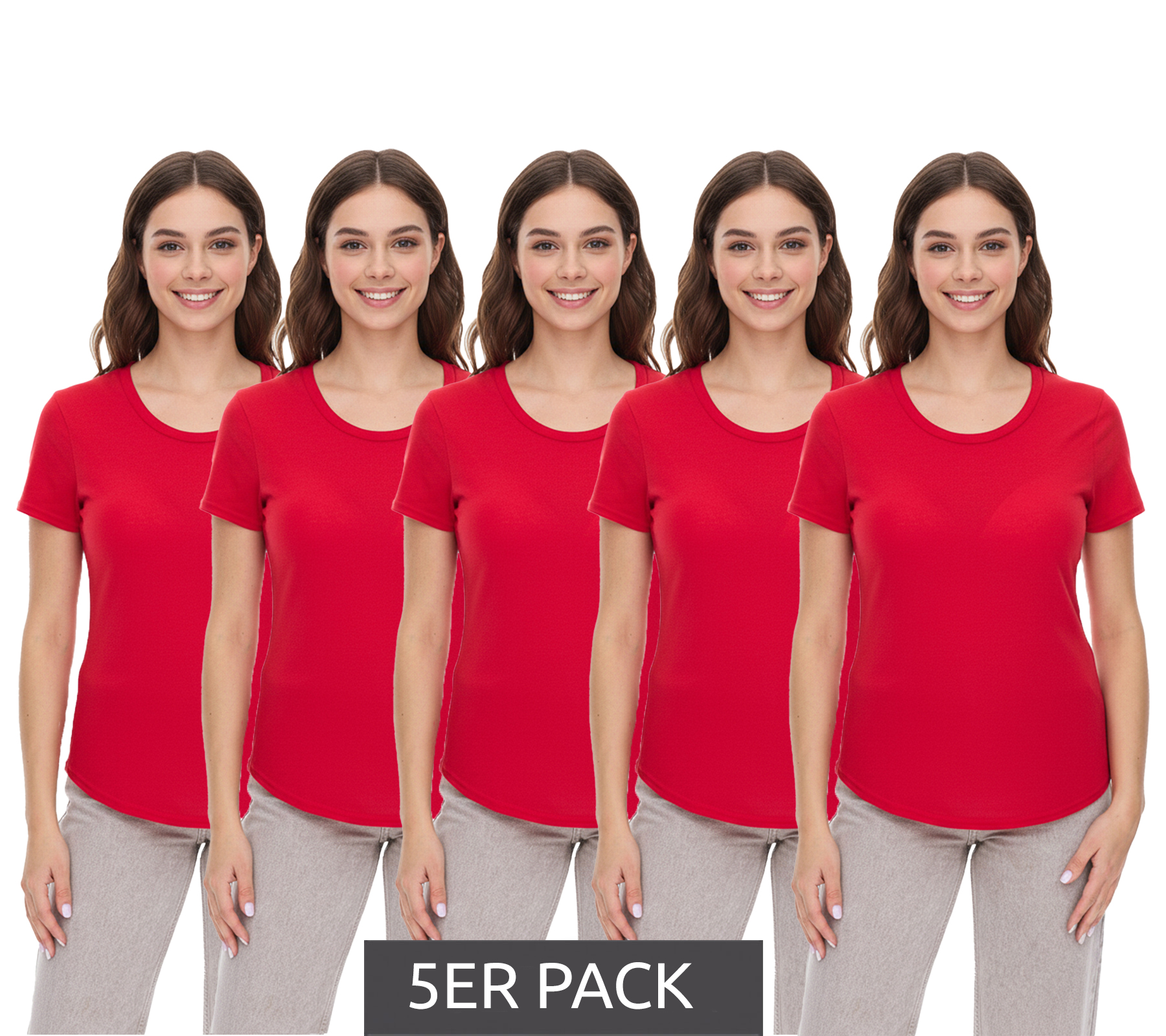 Pack de 5 camisetas ELEVATE Jade para mujer, sostenibles, de manga corta, 160 g/m², camiseta básica, interior, 3750125 Rojo