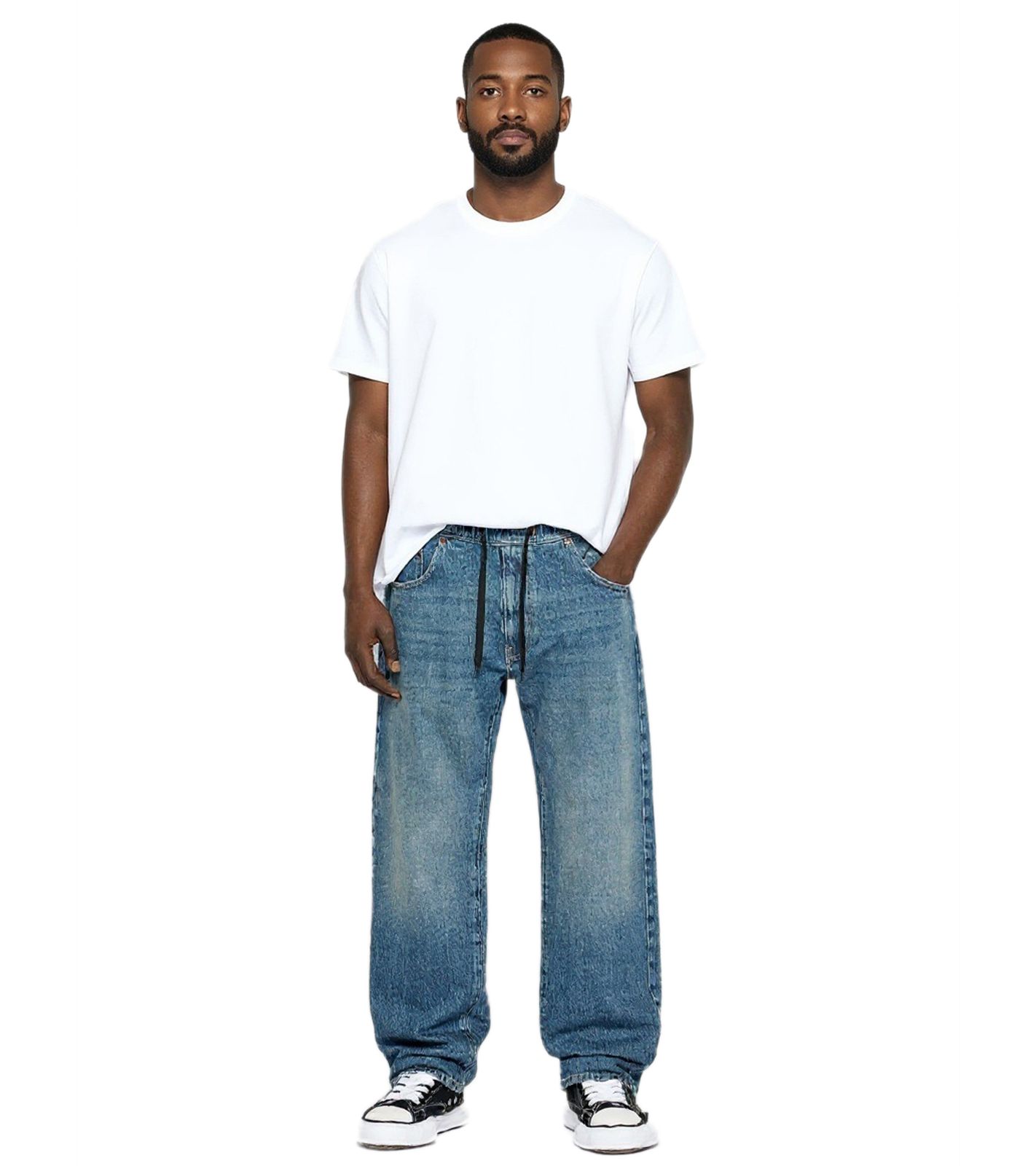 Pantalones vaqueros estilo jogger para hombre, corte holgado con cordón ajustable BR-12000 en azul oscuro o azul claro