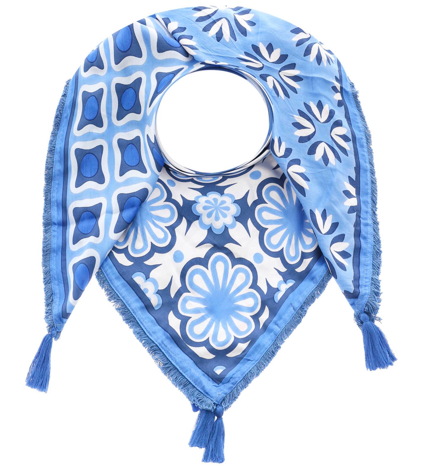 Pañuelo cuadrado Twin Heart con flores y adornos, estilo retro 3016Q, azul/rosa, azul/blanco o rosa/multicolor