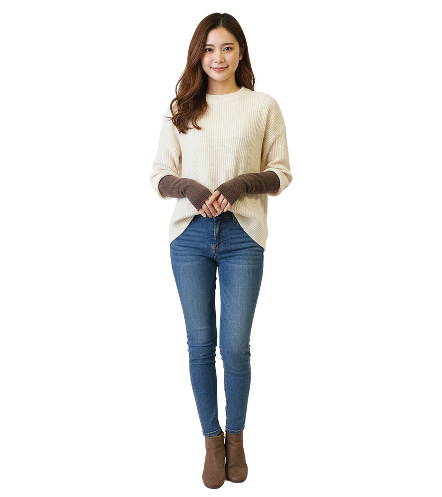 Puños de cachemir de punto fino para mujer de J.Jayz, calentadores de brazos ligeros de invierno, guantes cálidos 93785008 Marrón