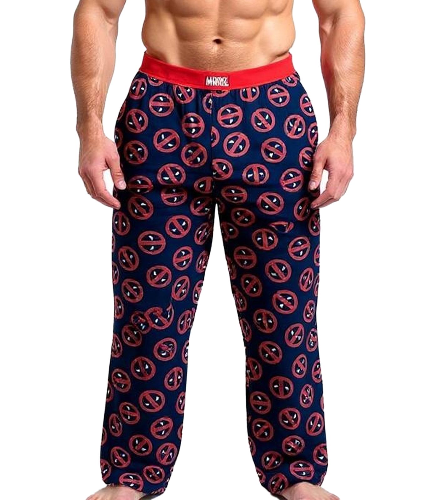 RE:COVERED X MARVEL Pantalones de pijama con estampado de Deadpool Icon Repeat para hombre PCMARV504 Azul marino/Rojo