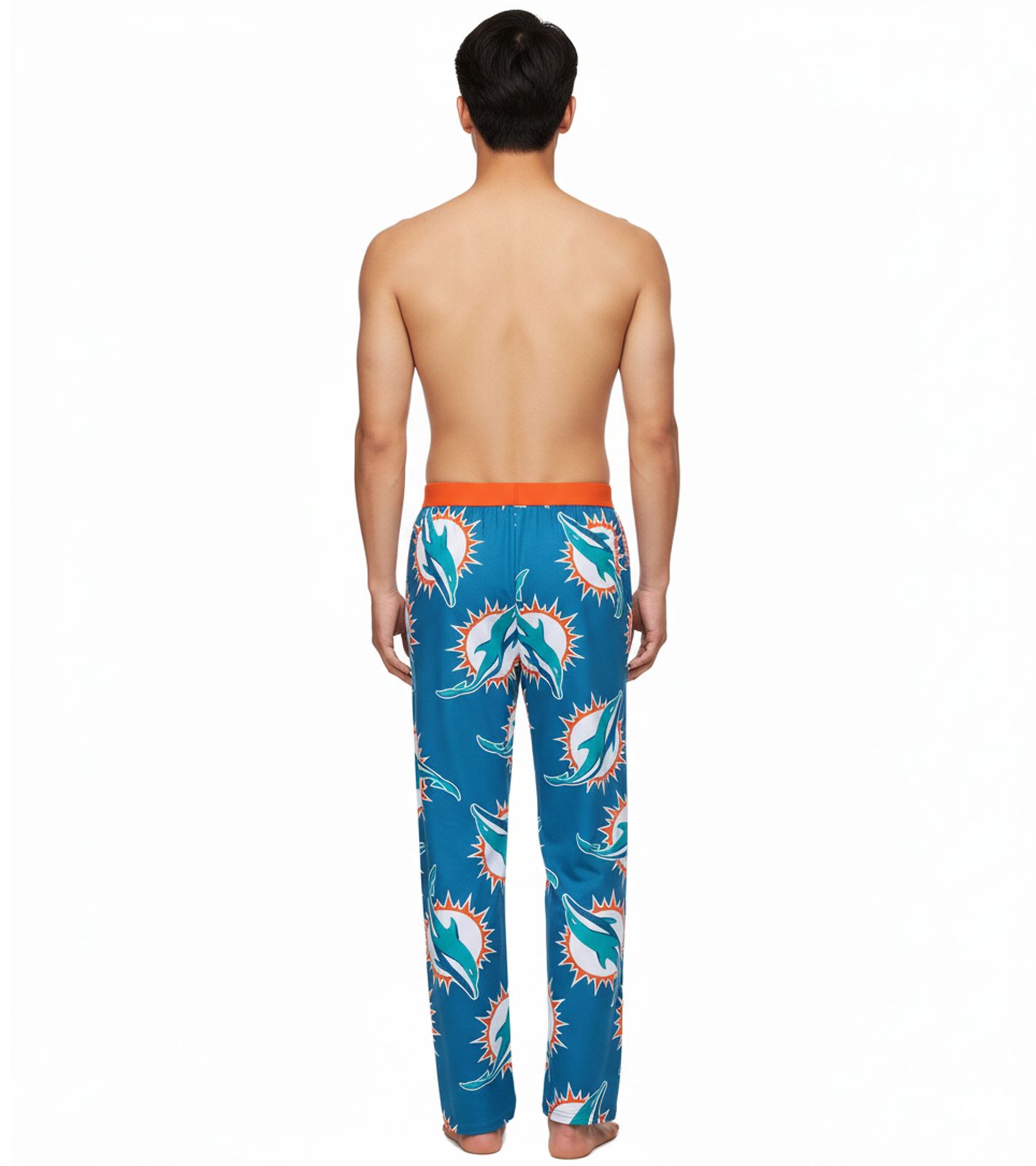 RE:COVERED X NFL Miami Dolphins - Pantalones de pijama de algodón para hombre, RCNFL1428L, Azul/Blanco