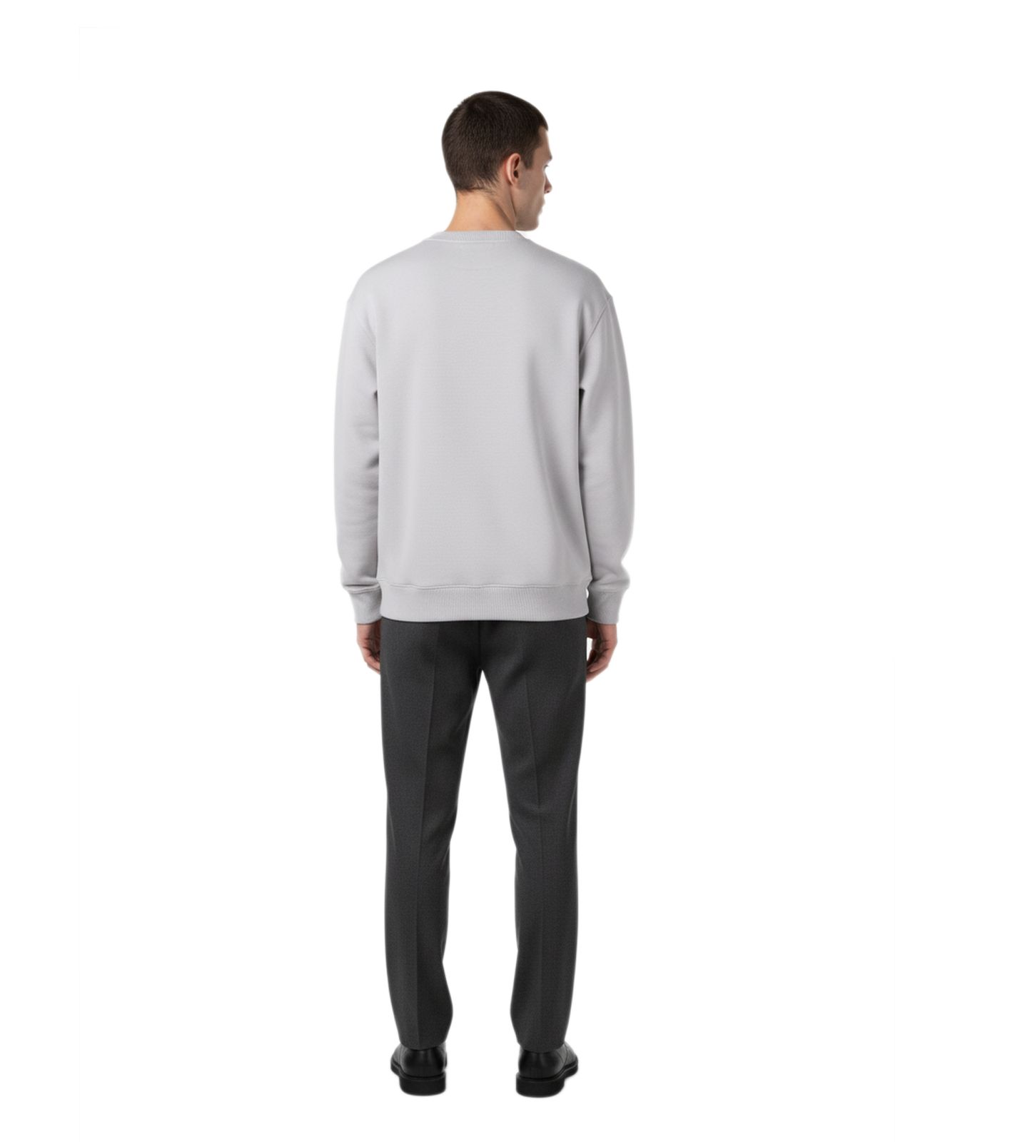 - Cuello redondo clásico con puños y bajo de canalé resistente.