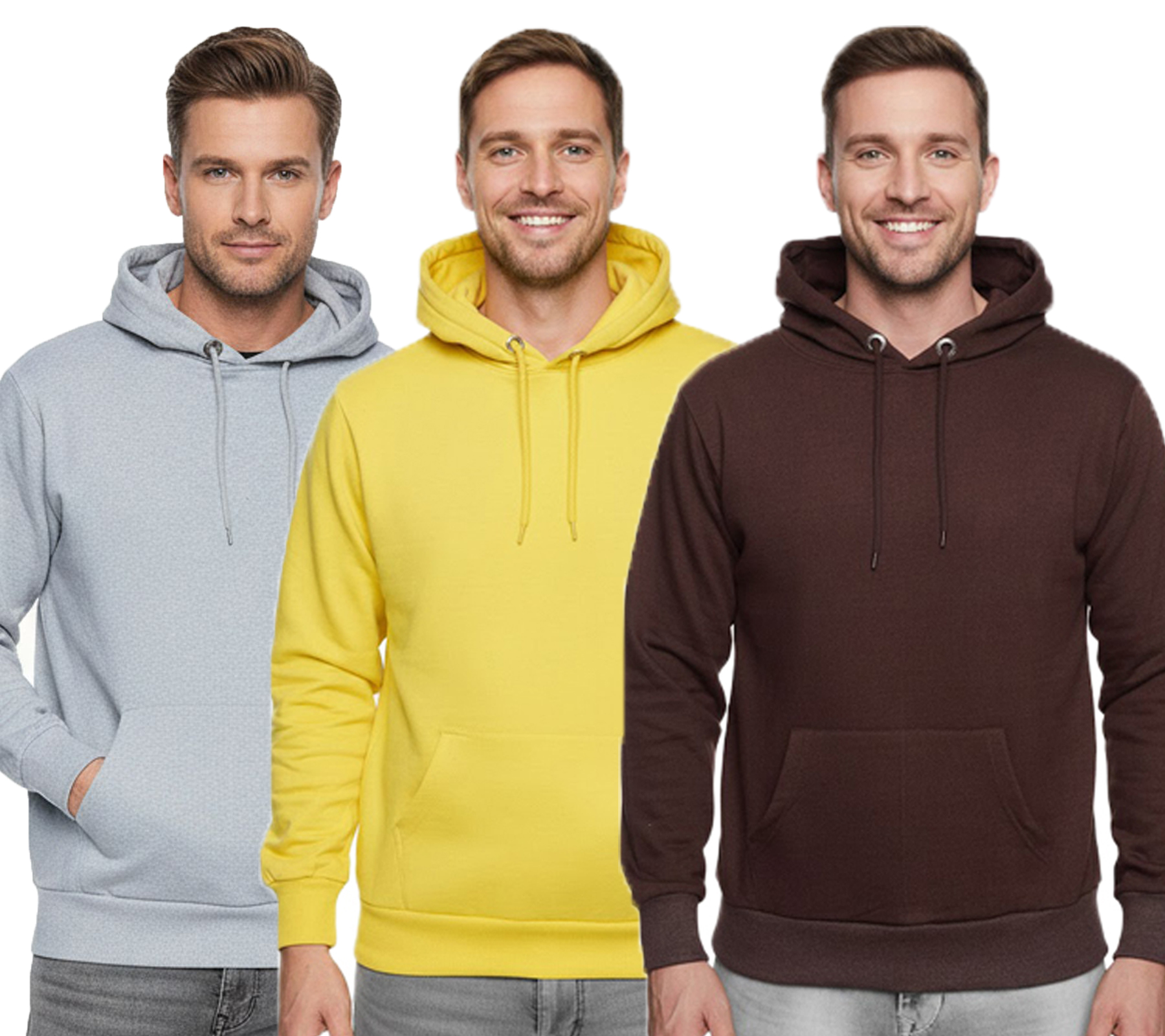 Sudadera con capucha de corte regular para hombre 19161, gris, amarillo o marrón