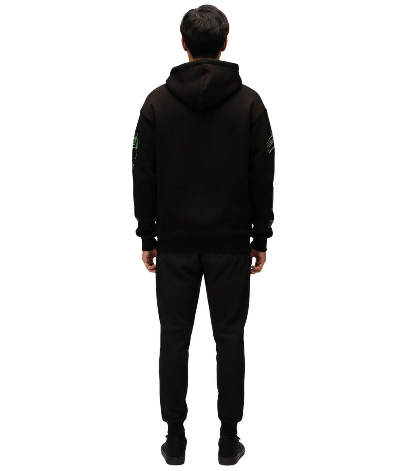 Sudadera con capucha RE:COVERED X LOONEY TUNES para hombre con estampado de Marvin Marciano, algodón, manga larga, RCWARN549, negra