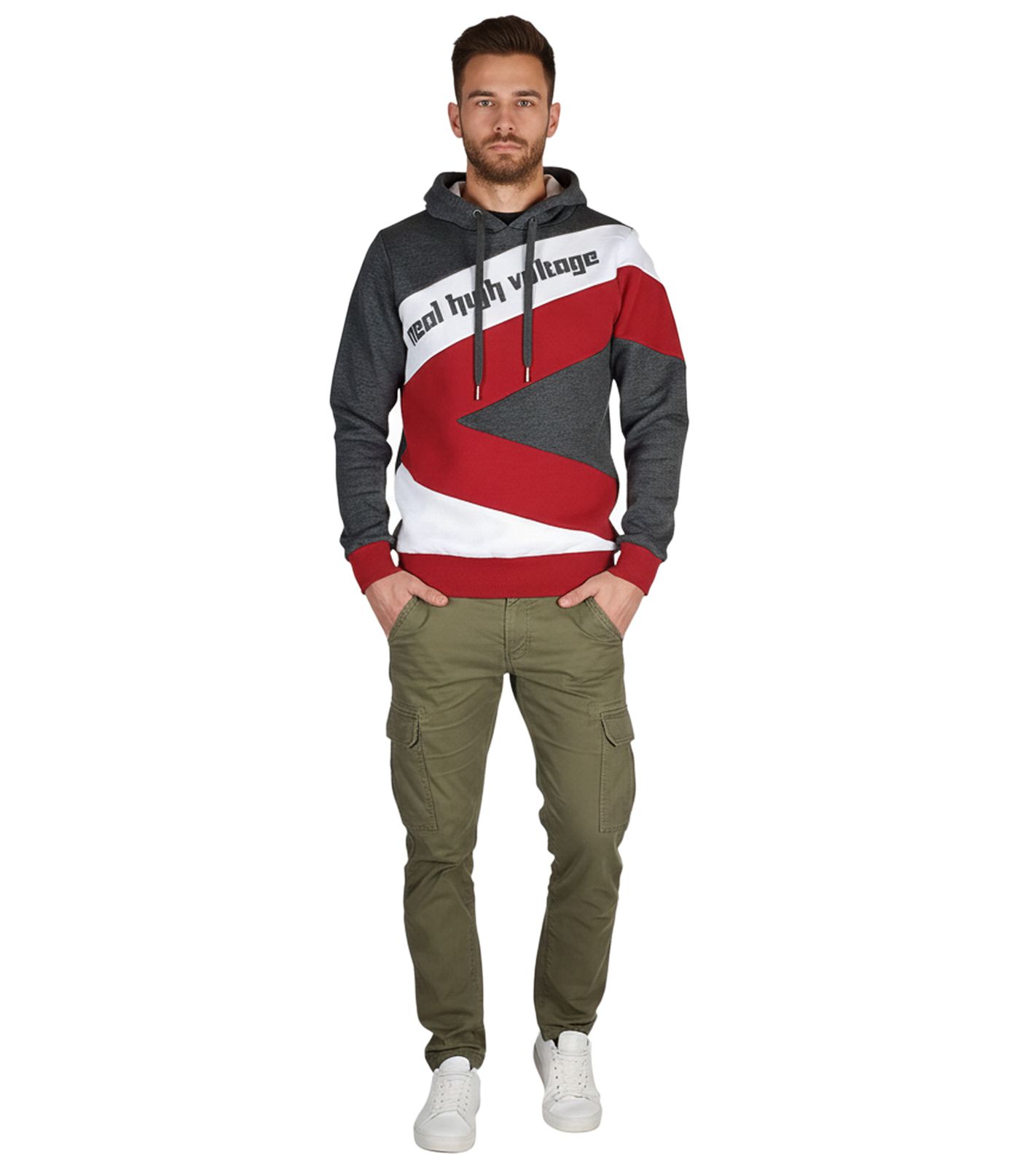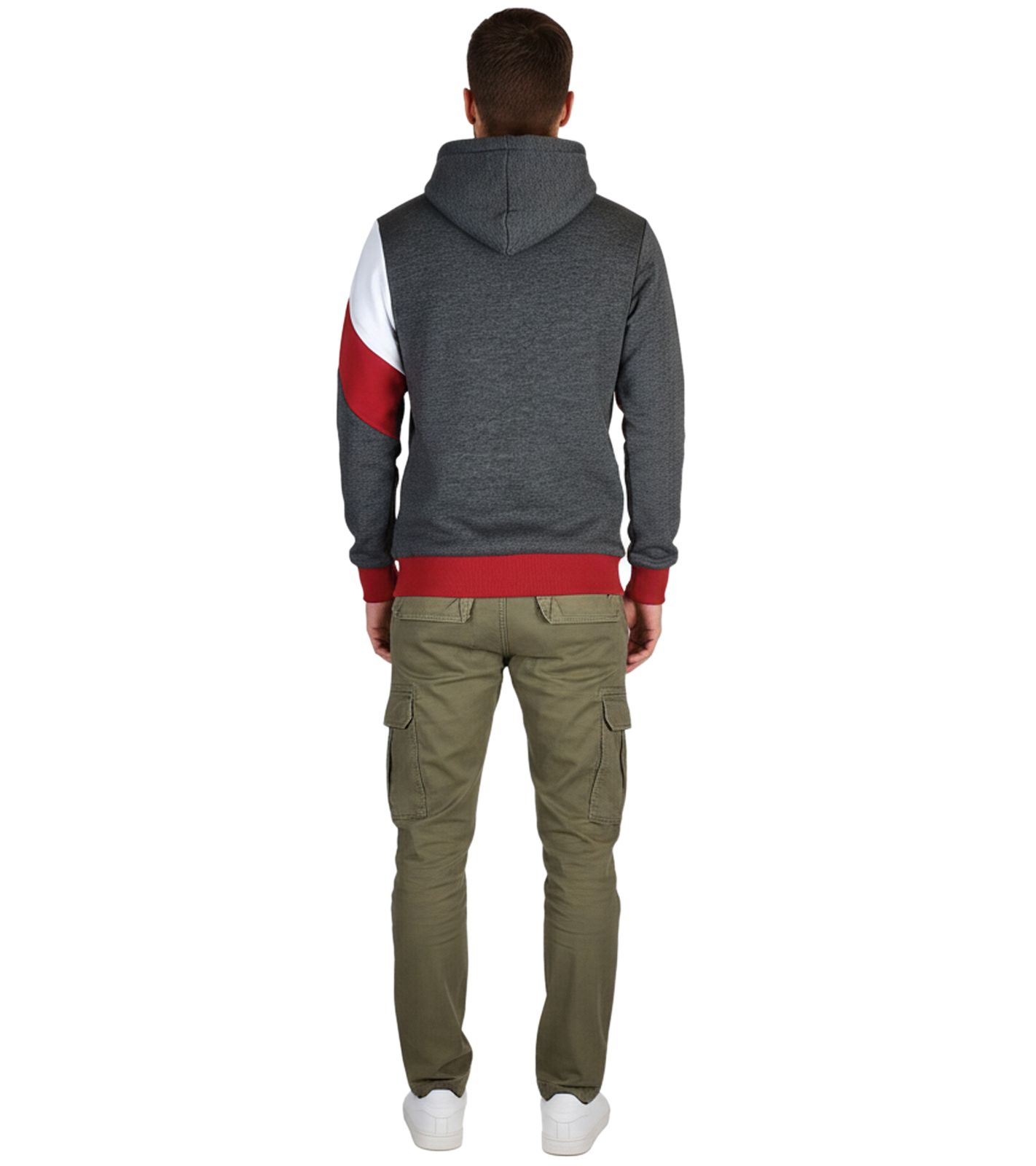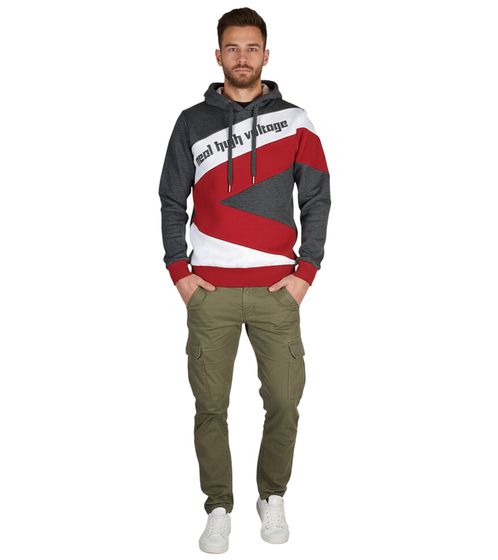 Sudadera deportiva con capucha y bloques de color para hombre, 4727 Gris Oscuro/Blanco/Rojo
