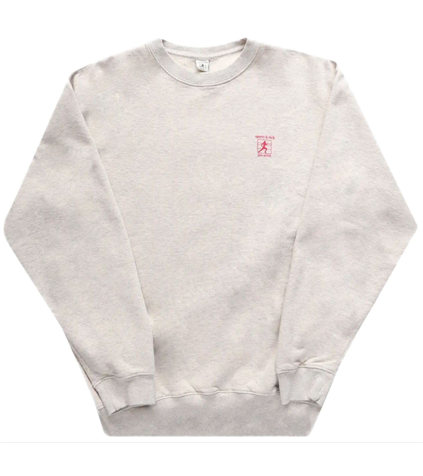 Sudadera deportiva Sporty & Rich para hombre con cuello redondo, sudadera de diseño, color avena jaspeado/rojo