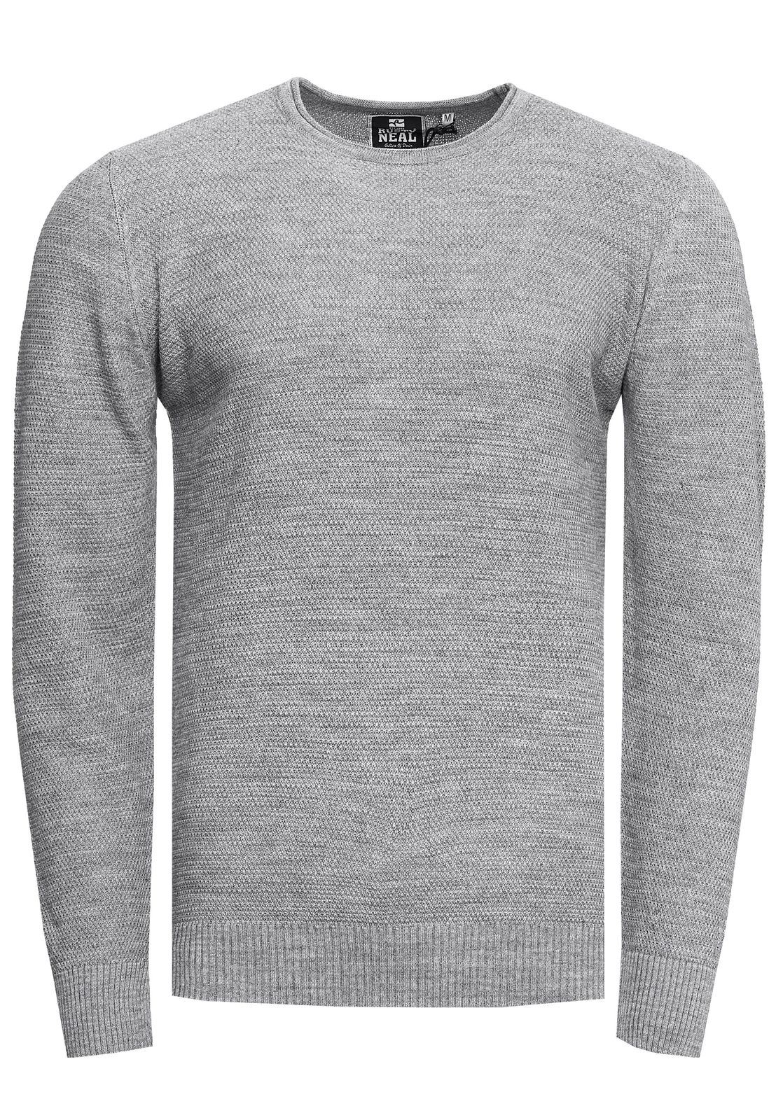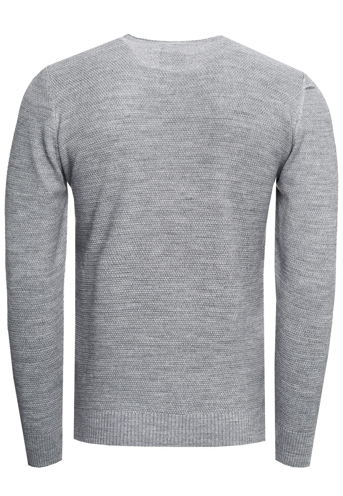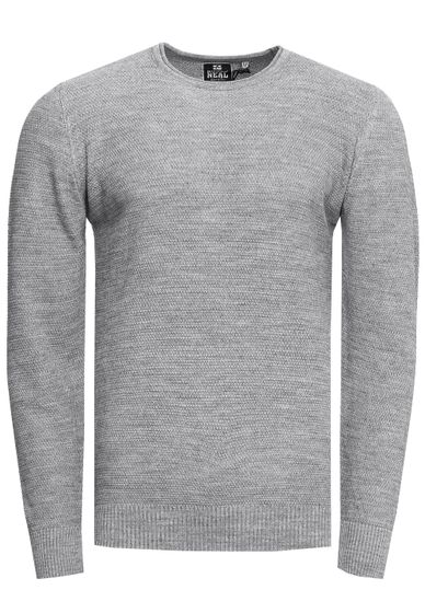 Suéter básico atemporal de punto fino para hombre con cuello redondo y textura, suéter de punto de corte entallado 13379 Gris