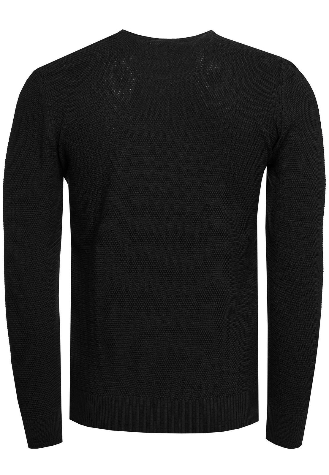 Suéter básico atemporal de punto fino para hombre con cuello redondo y textura, suéter de punto de corte entallado 13379 Negro