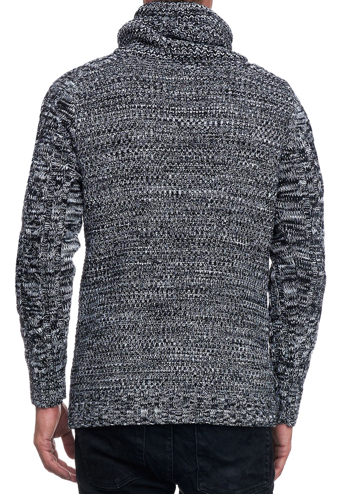 Suéter de cuello alto de punto moderno para hombre, jersey de punto texturizado 13369 Negro