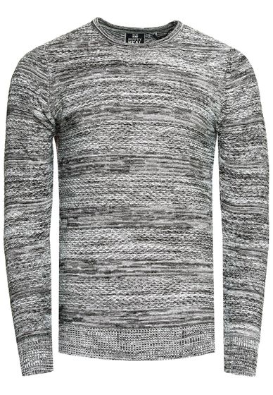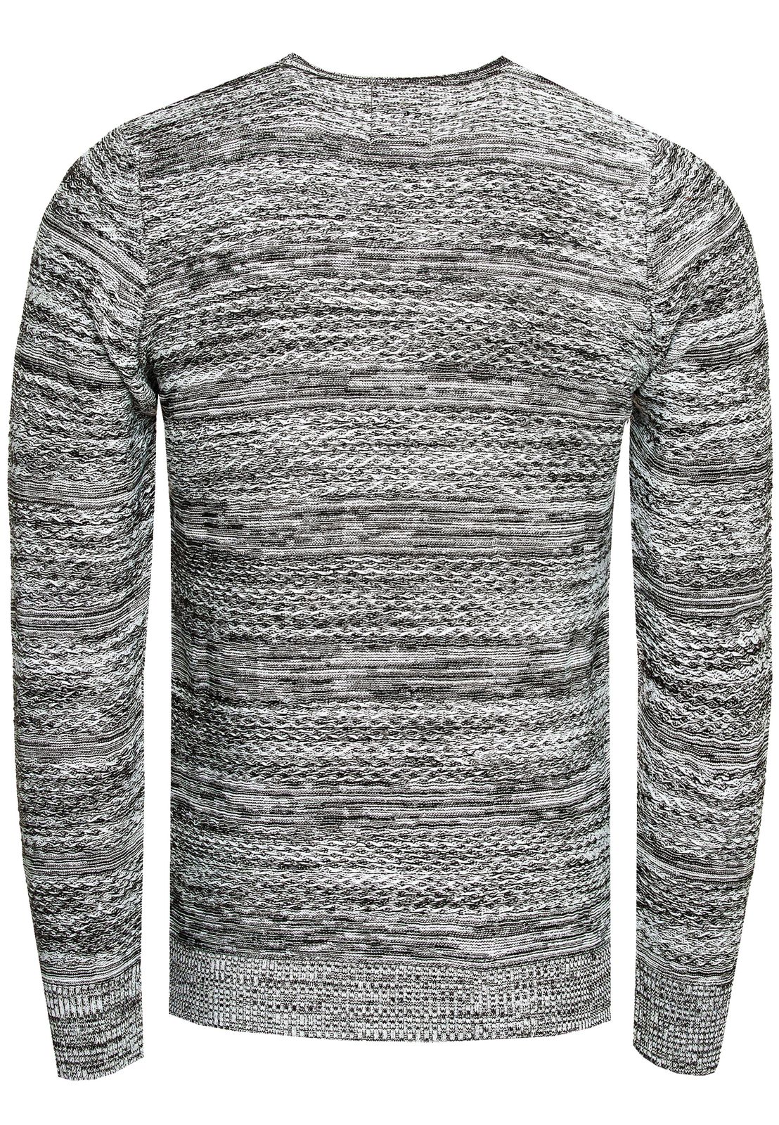 Suéter de punto de cuello redondo elegante para hombre con textura jaspeada, corte entallado, suéter de punto fino 13377 Gris