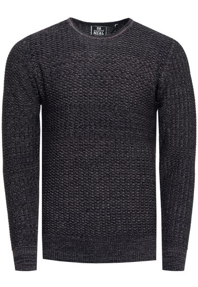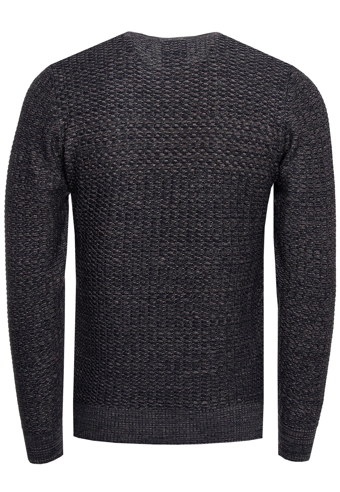 Suéter de punto fino de moda para hombre con patrón texturizado, jersey de cuello redondo 13373 Azul marino
