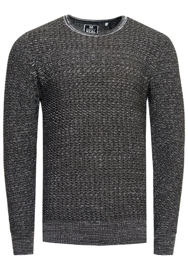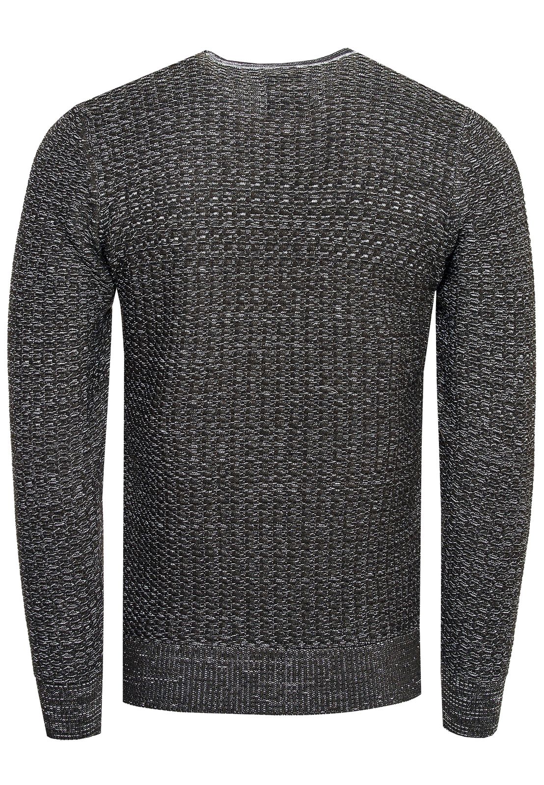 Suéter de punto fino de moda para hombre con patrón texturizado, jersey de cuello redondo 13373 Caqui