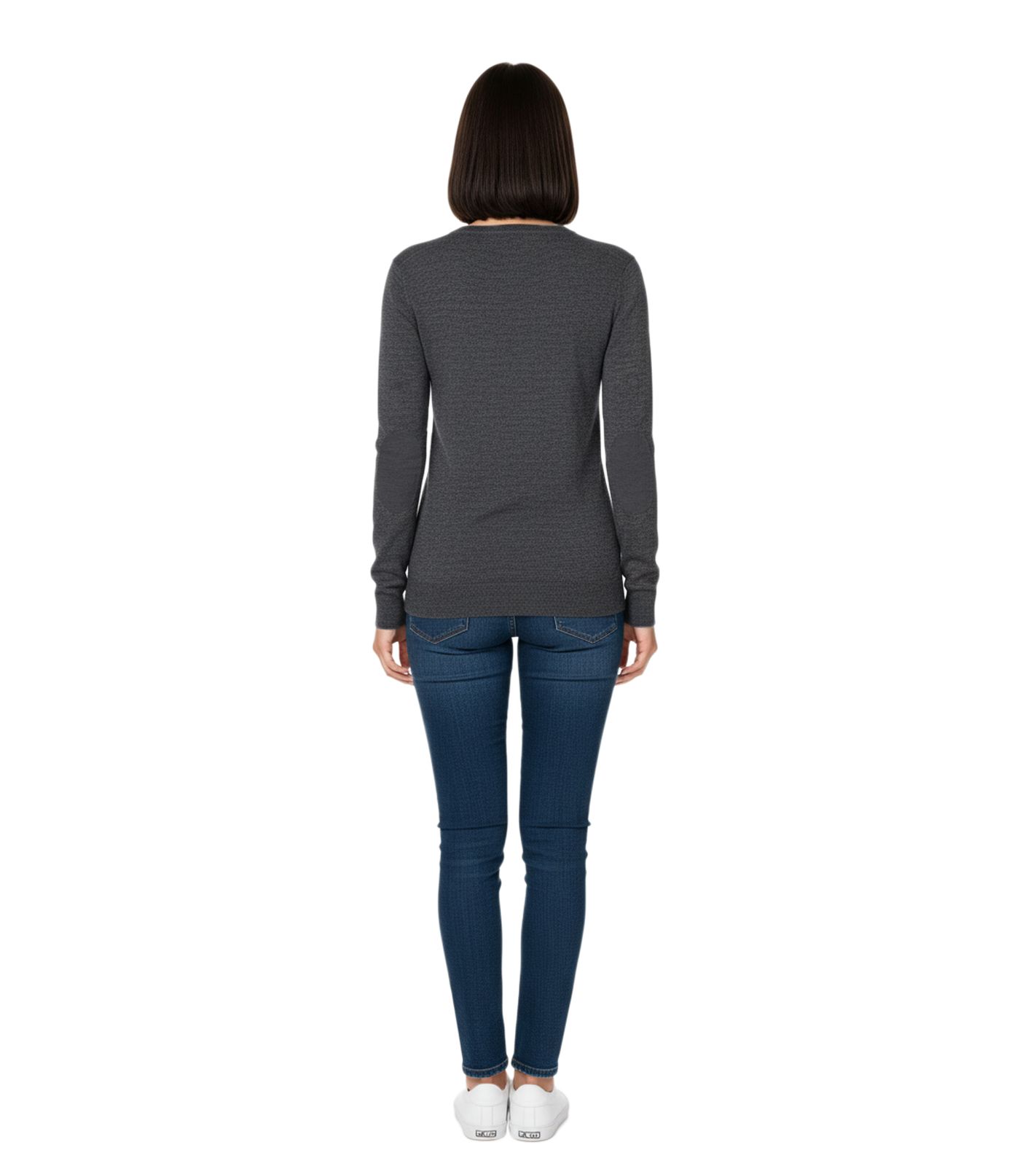 Suéter de punto moderno para mujer con coderas a tono, lana merino, talla 134-328, gris