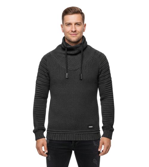 Suéter urbano de cuello alto estilo motero, jersey de punto grueso con cuello alto vuelto 13293 Negro