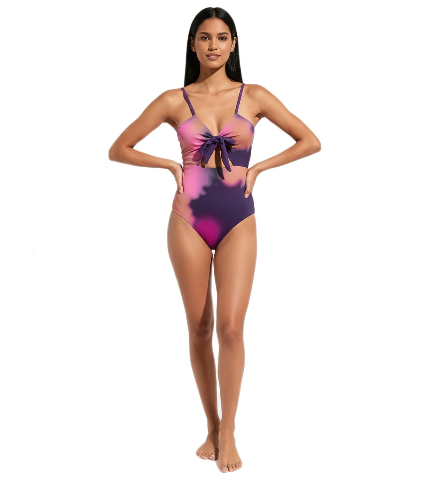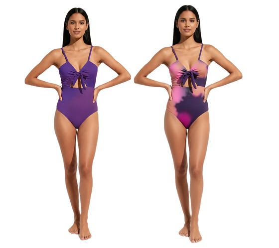 Traje de baño reversible para mujer con impresionante degradado de color (907506) Morado/Multicolor