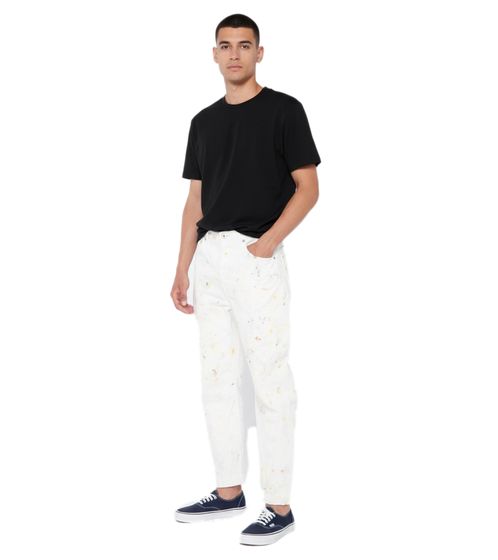 Vaqueros holgados Sendai de John Elliott para hombre, ropa urbana premium, corte holgado y acabado artístico Pollock, blanco