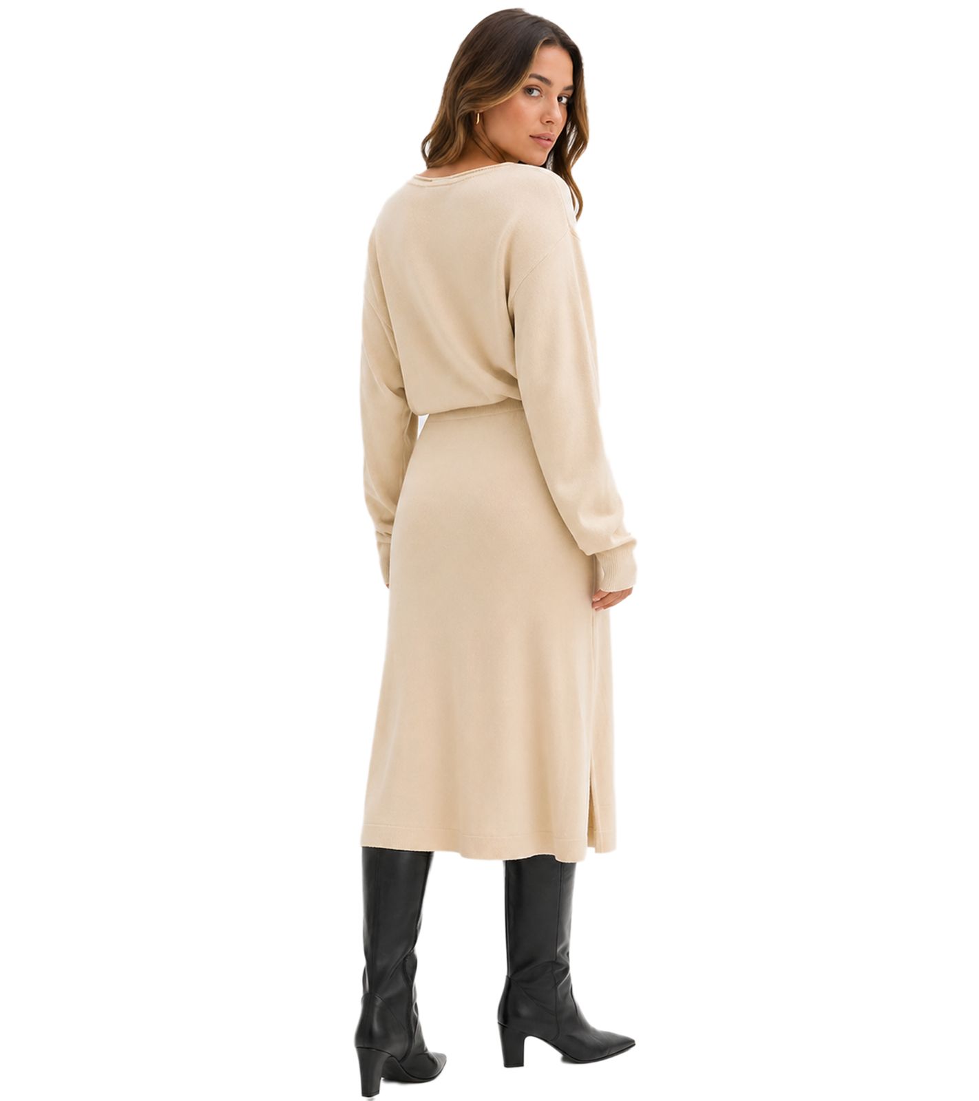 Vestido de punto cómodo para mujer con costuras decorativas a juego, vestido midi 938974 color arena-beige