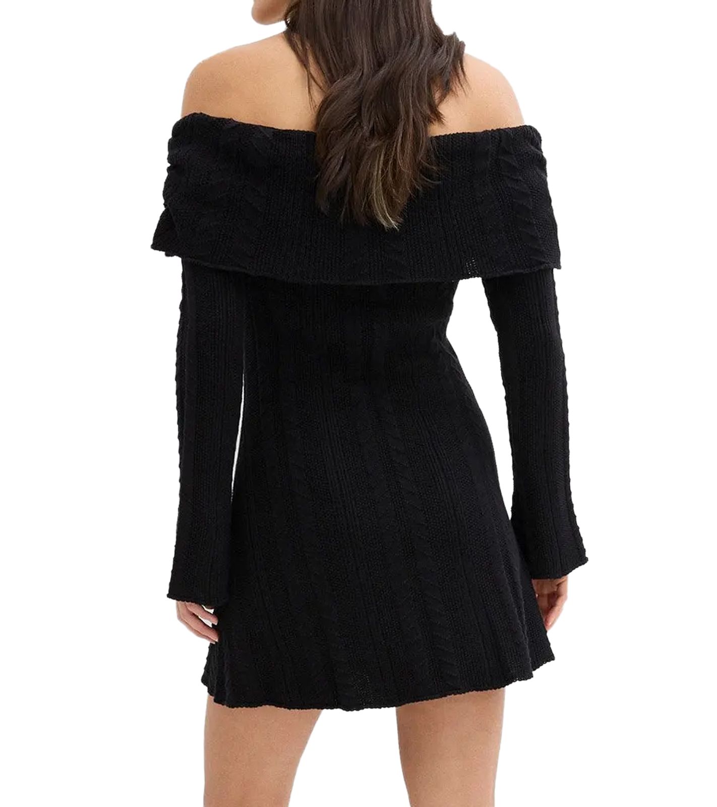 Vestido de punto para mujer con escote Bardot y hombros descubiertos, 970506 Negro
