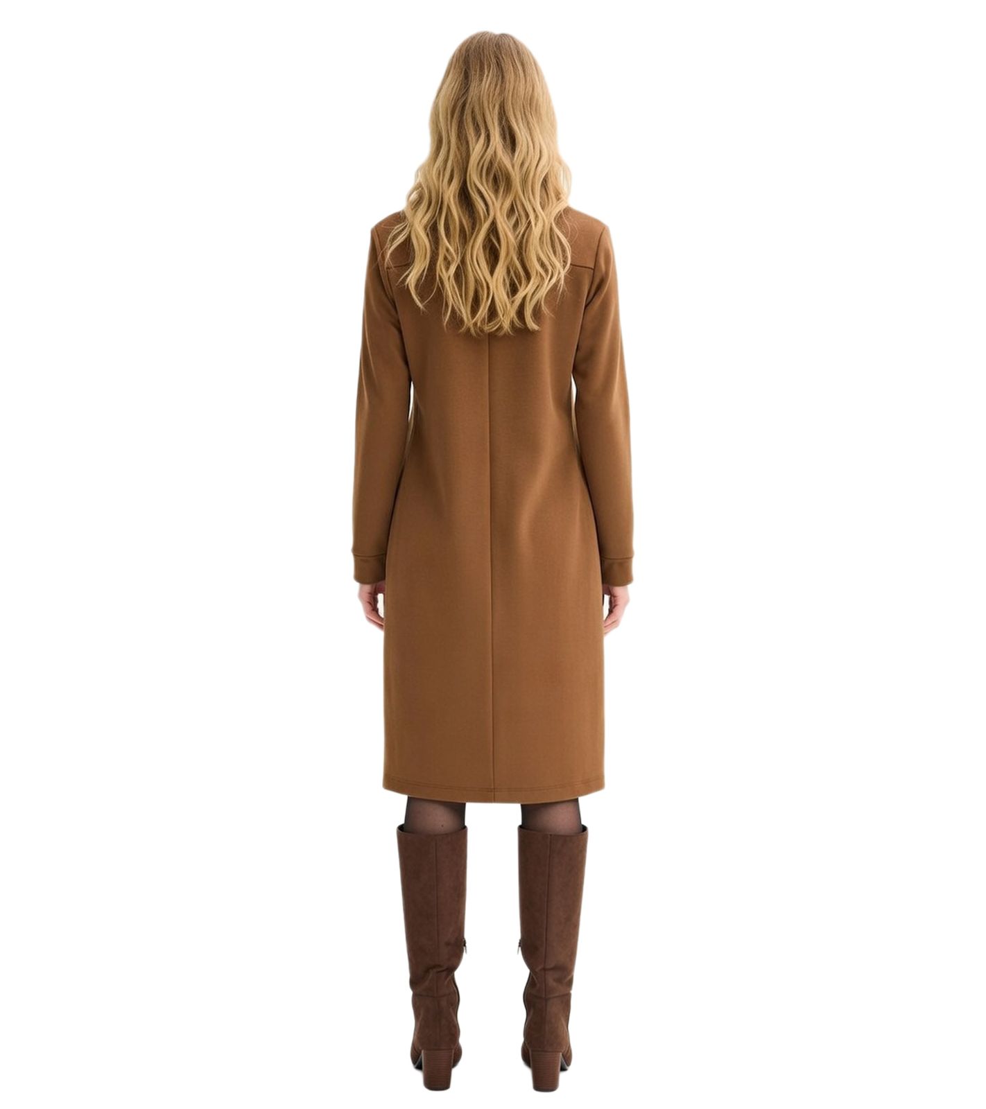 Vestido midi moderno para mujer en cómodo tejido Punto di Roma con cuello polo 935304 Marrón