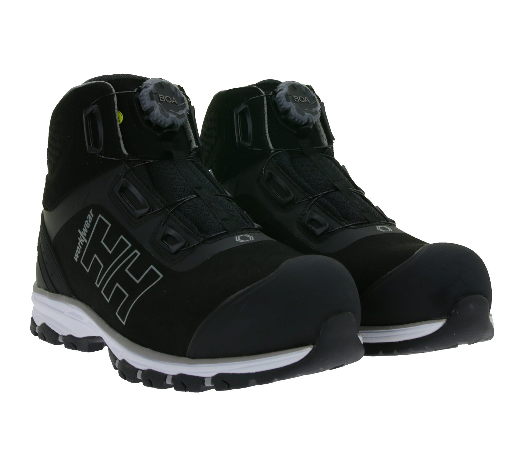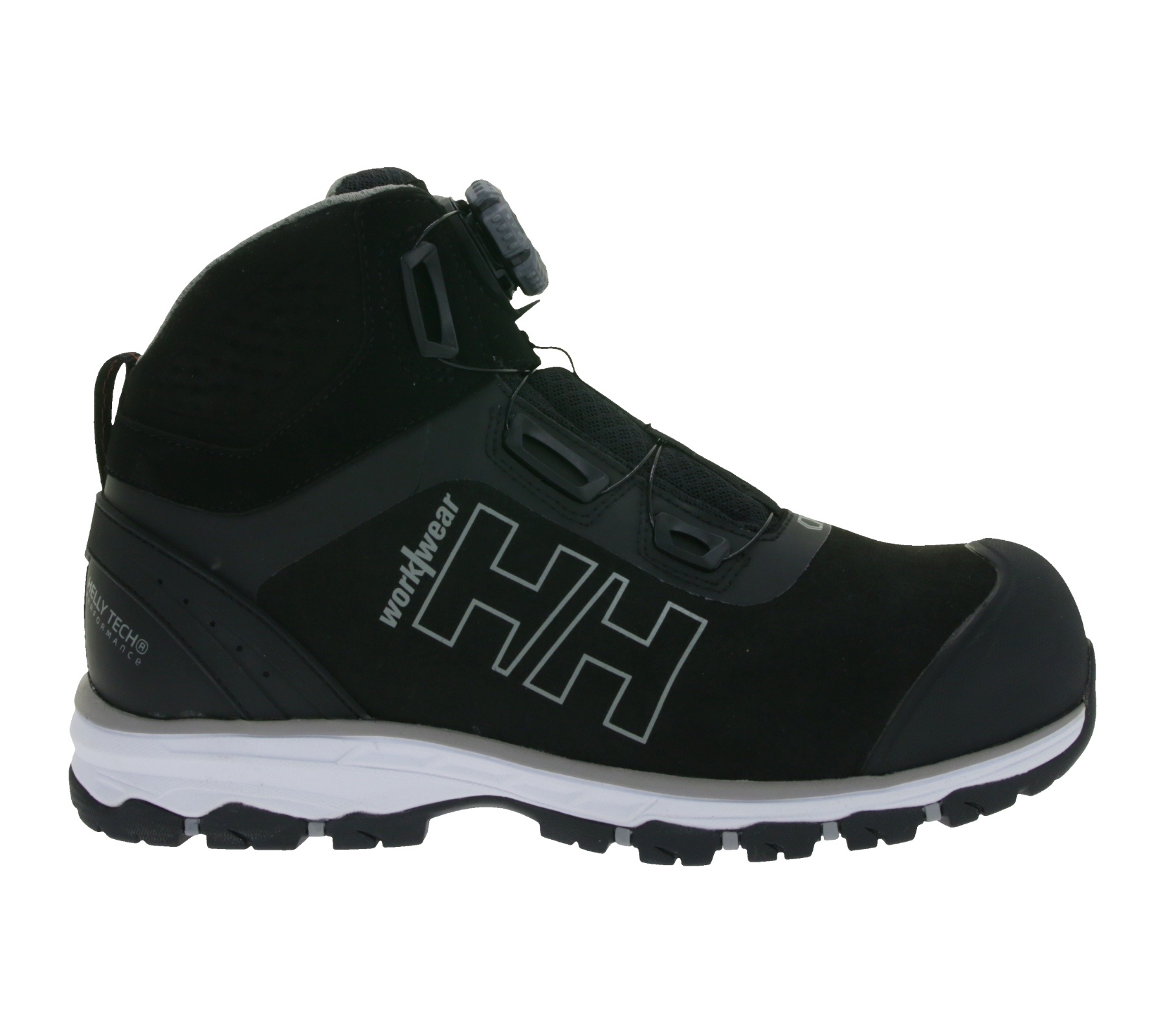Zapatos de seguridad impermeables Helly Hansen Chelsea Evolution Mid Boa S3 para mujer con Ortholite y membrana Helly Tech®, horma ancha, protección clase S3, 78269_930, negro/gris