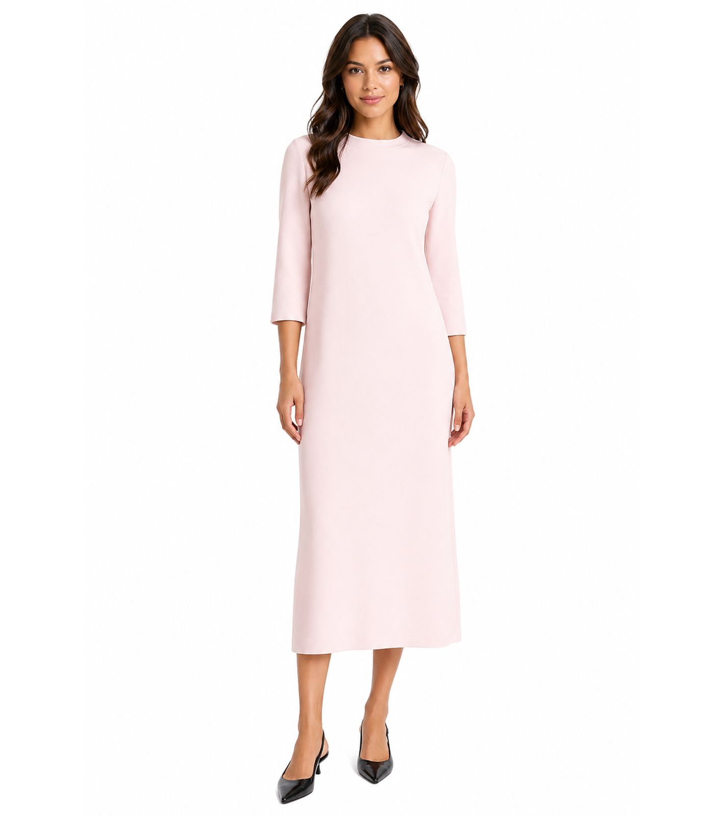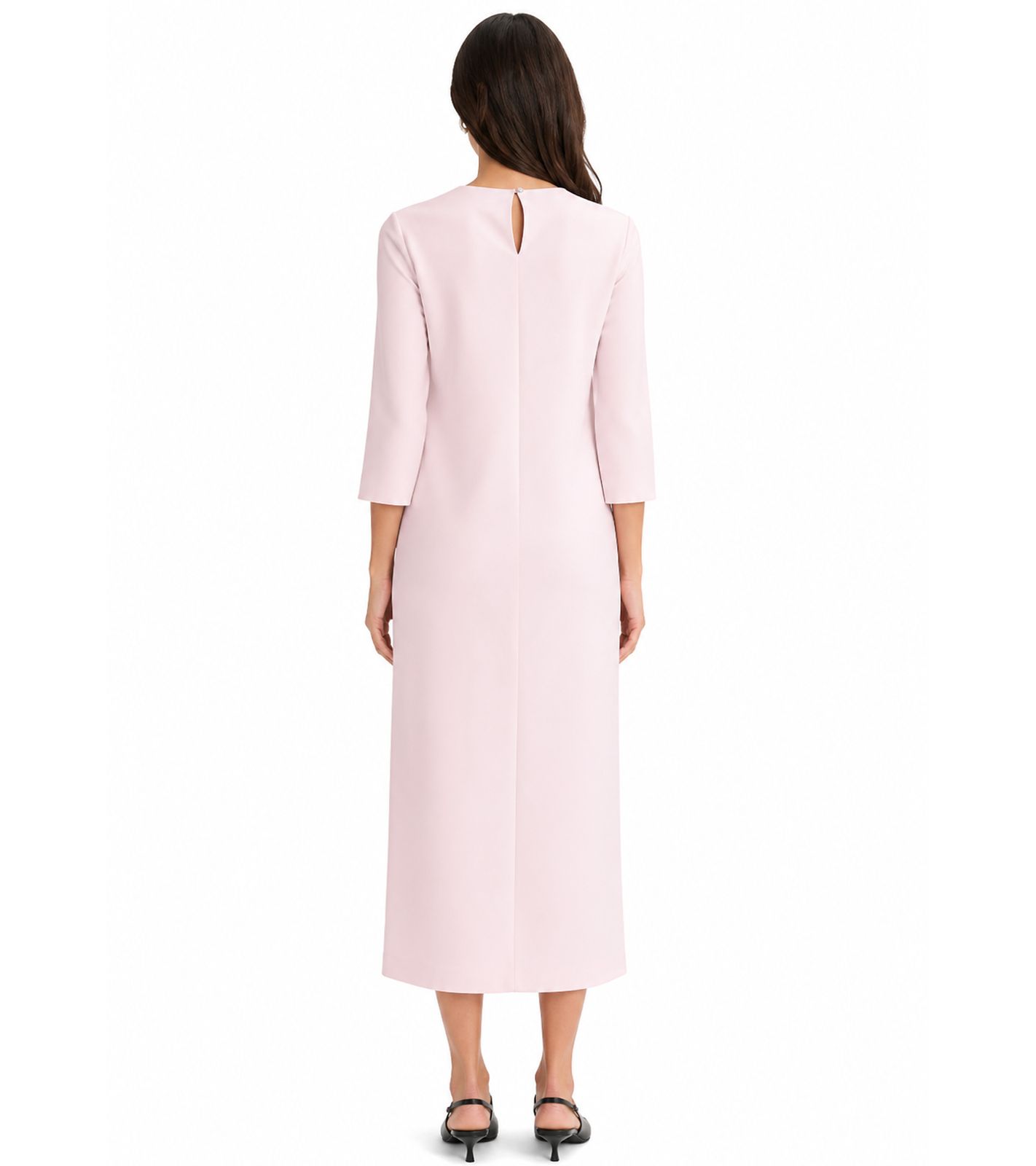 feminines Damen Midi-Kleid aus glänzendem Satin Ausgeh-Kleid 3/4 Arm 955679 Rosa