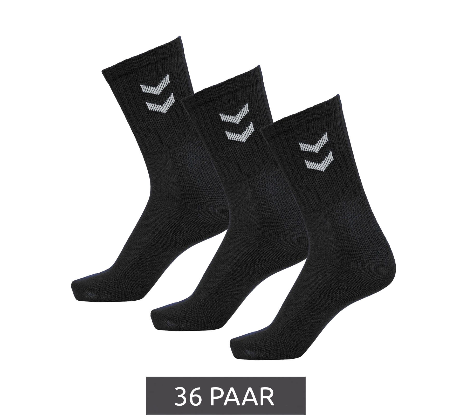 36 paires de chaussettes hummel Basic Crew à chevrons contrastants, chaussettes en coton, chaussettes de sport 022030, noires