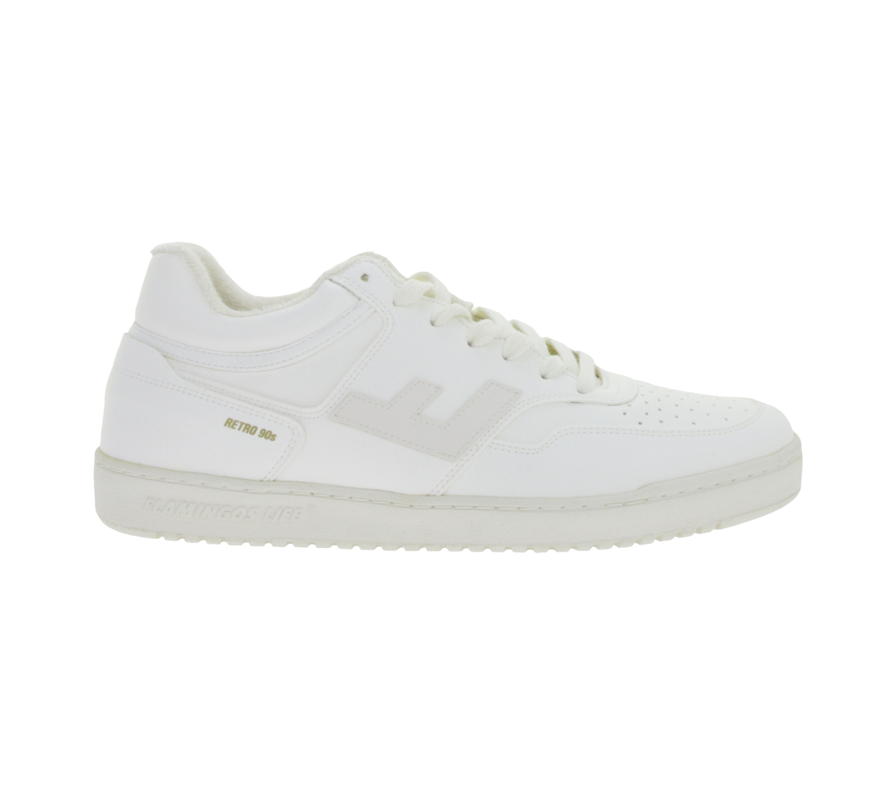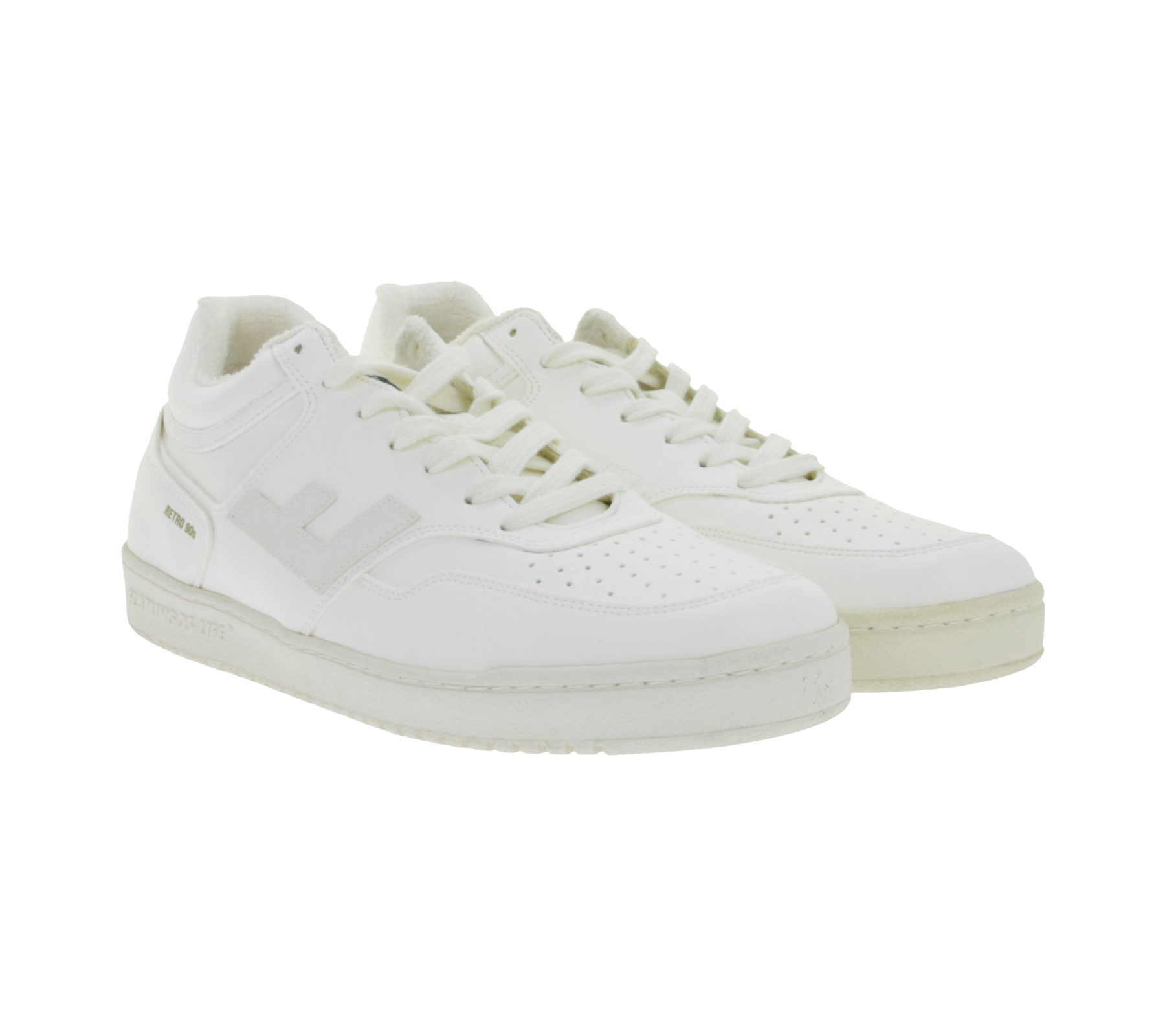 Baskets basses FLAMINGOS LIFE RETRO années 90 pour femmes, style urbain durable, fabriquées en Espagne, blanches.