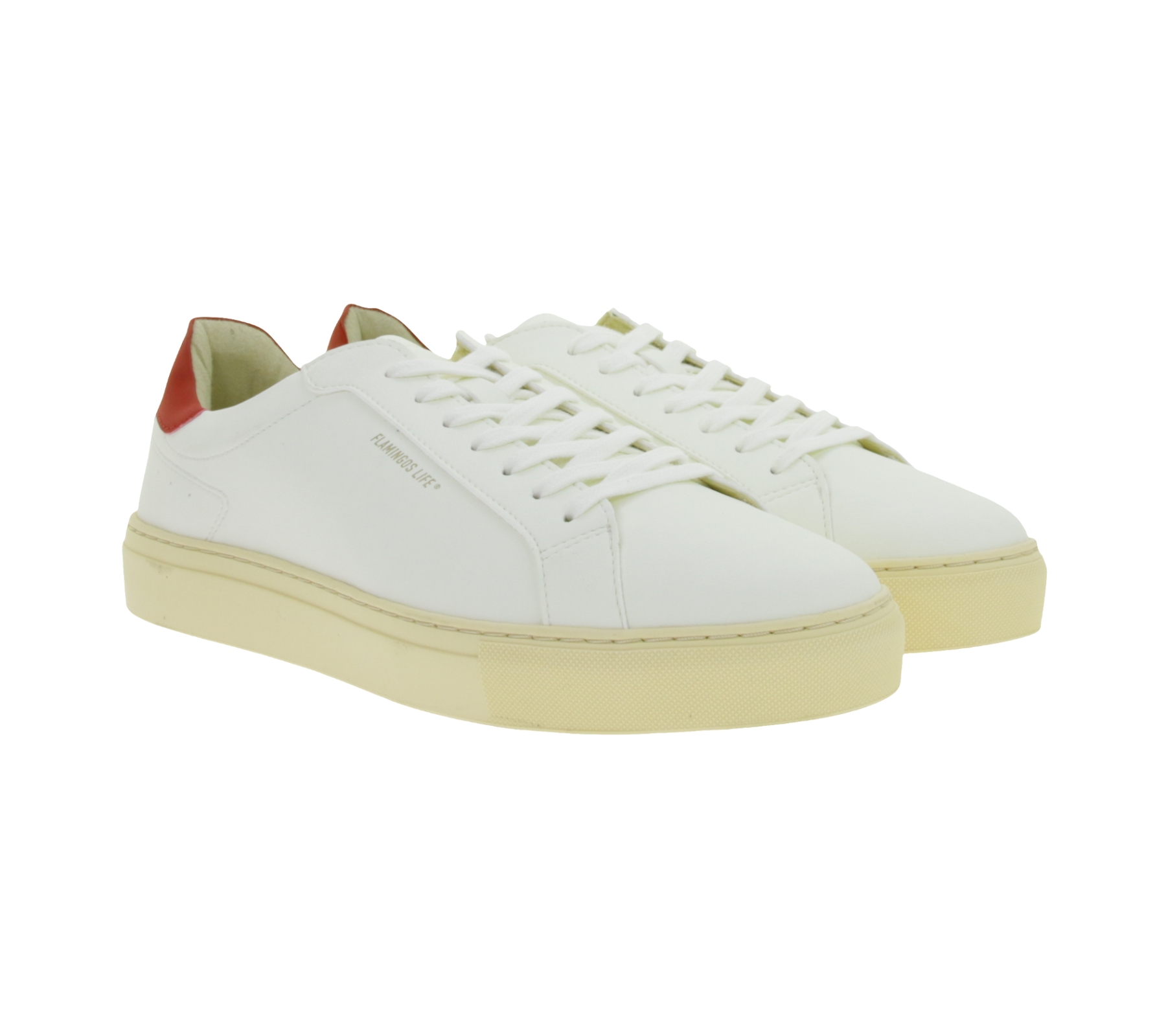 Baskets basses vegan FLAMINGOS LIFE Hampton Court pour homme, fabriquées au Portugal, blanches et rouges, écoresponsables