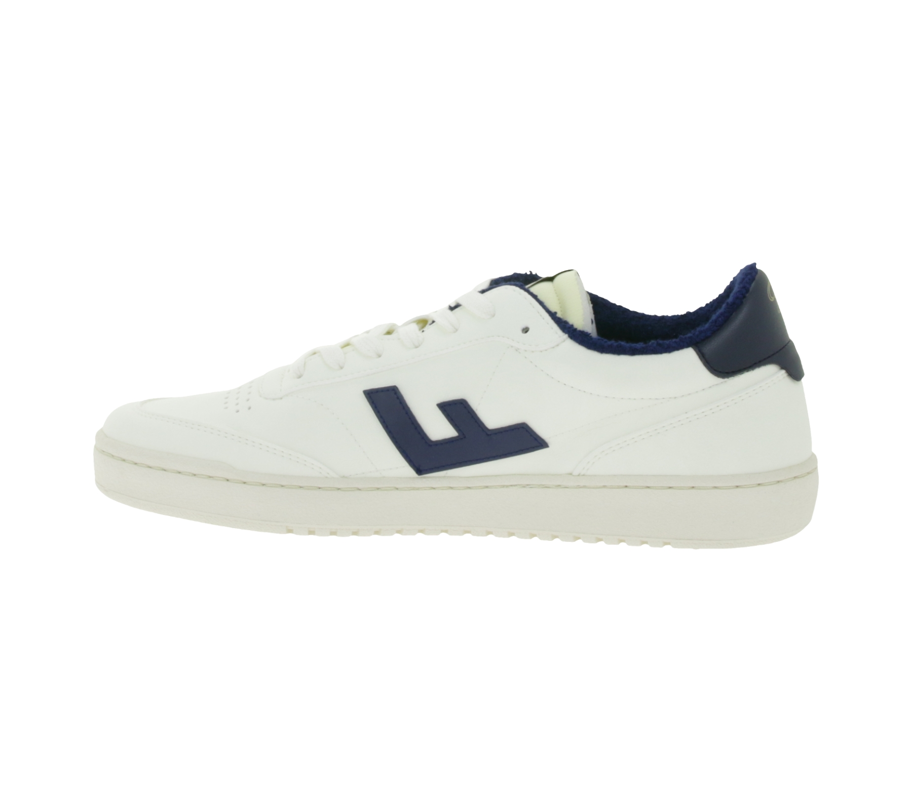 Baskets basses vegan FLAMINGOS LIFE Stadium pour homme et femme, beige/bleu foncé, fabriquées en Espagne.