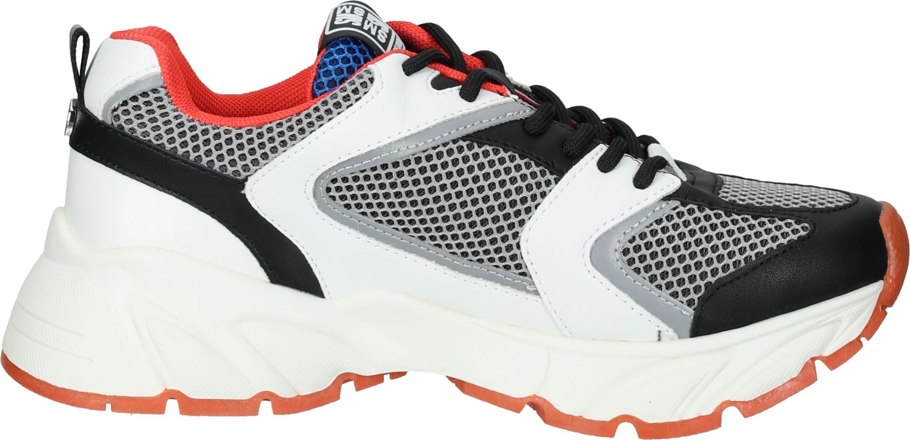 - L'empeigne est composée d'un mélange original de similicuir et de textile.