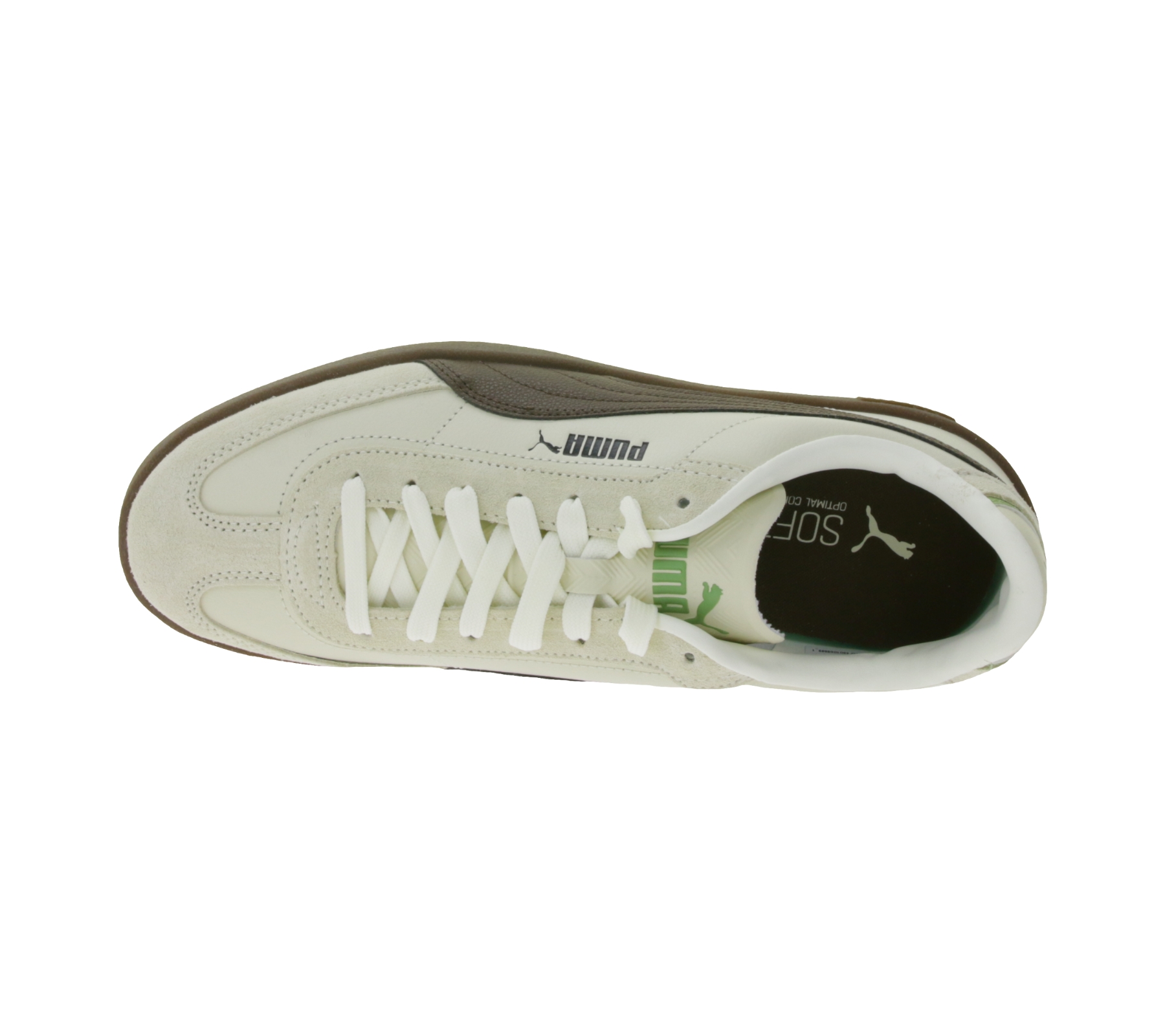 Baskets PUMA Club II Era pour homme et femme, en cuir véritable, au design rétro inspiré du football, avec semelle intérieure Softfoam, coloris beige/noir, blanc/noir ou beige/marron.