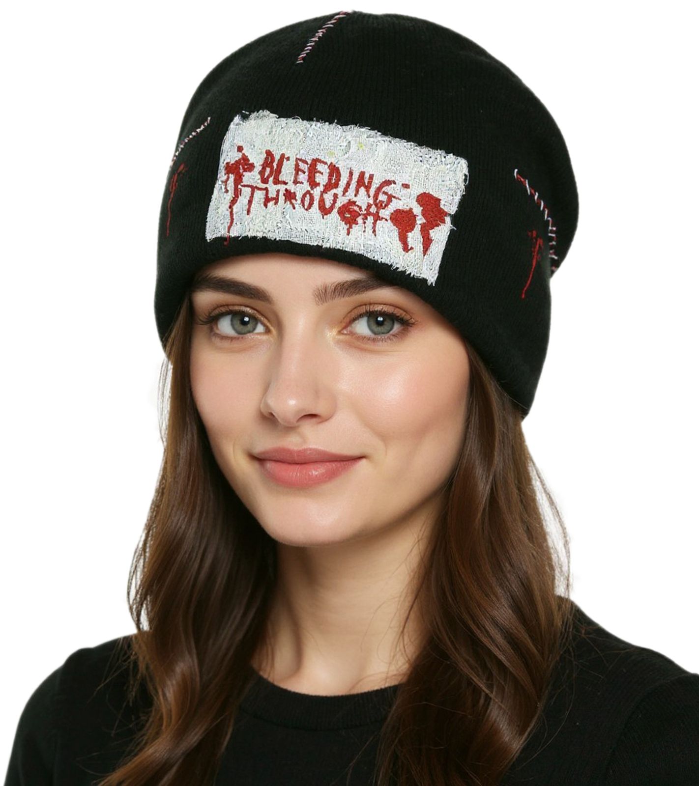 Bonnet Bleeding Through, bonnet douillet, bonnet tricoté élégant, article de fan, KC109495BTH, noir