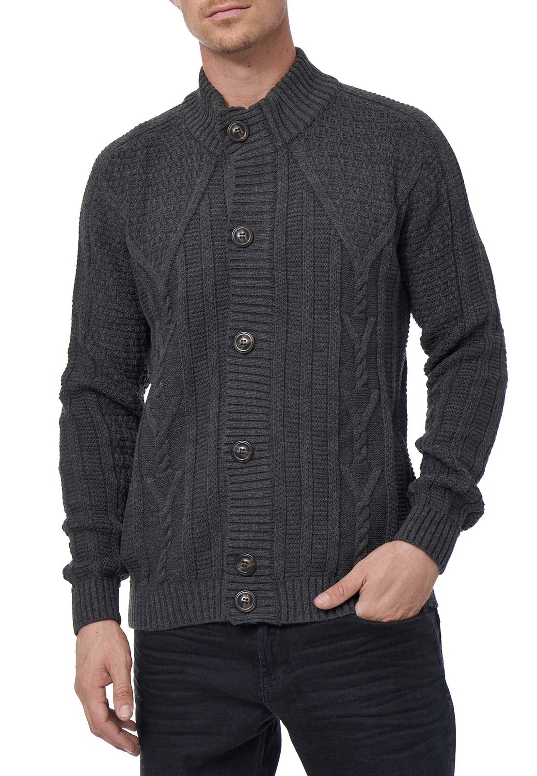 Cardigan classique pour homme en grosse maille, col montant et patte de boutonnage, cardigan texturé anthracite 13401