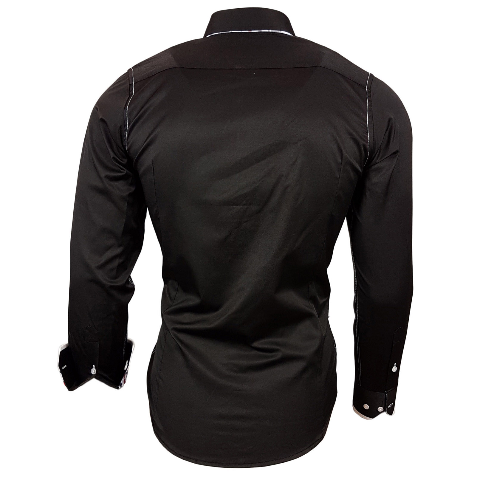 Chemise tendance à manches longues pour homme, modèle 11013 Noir