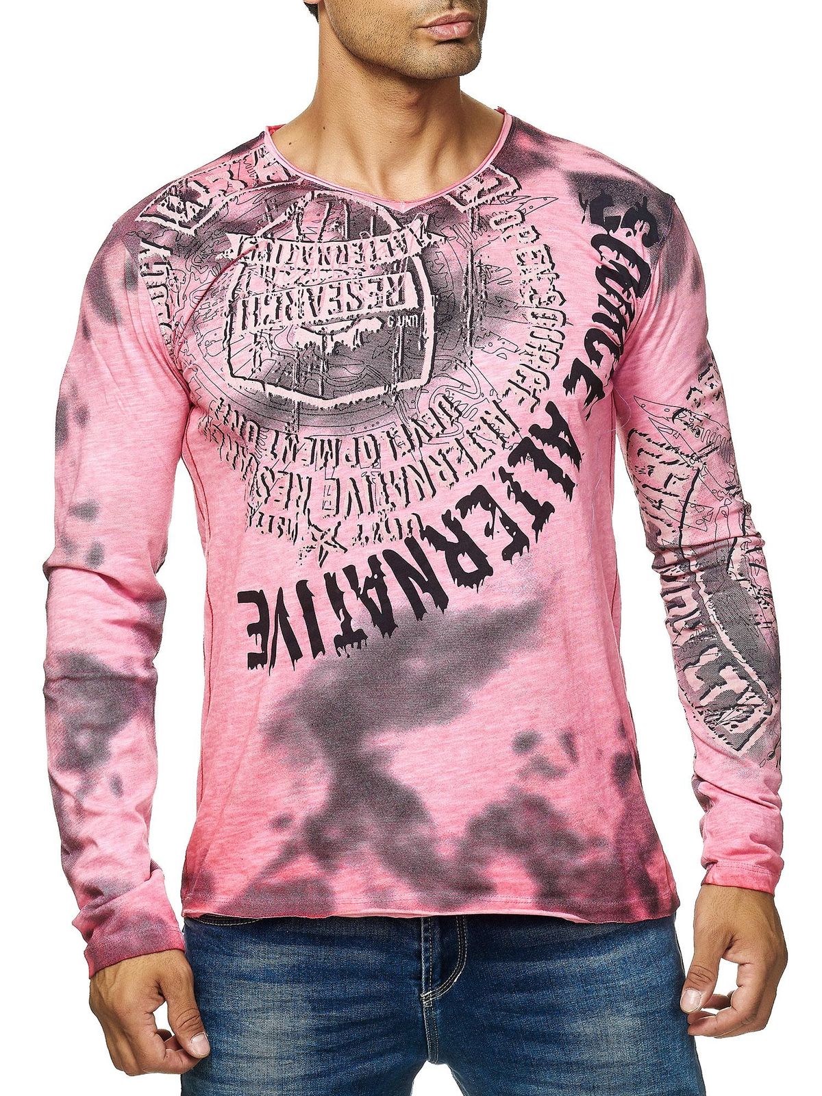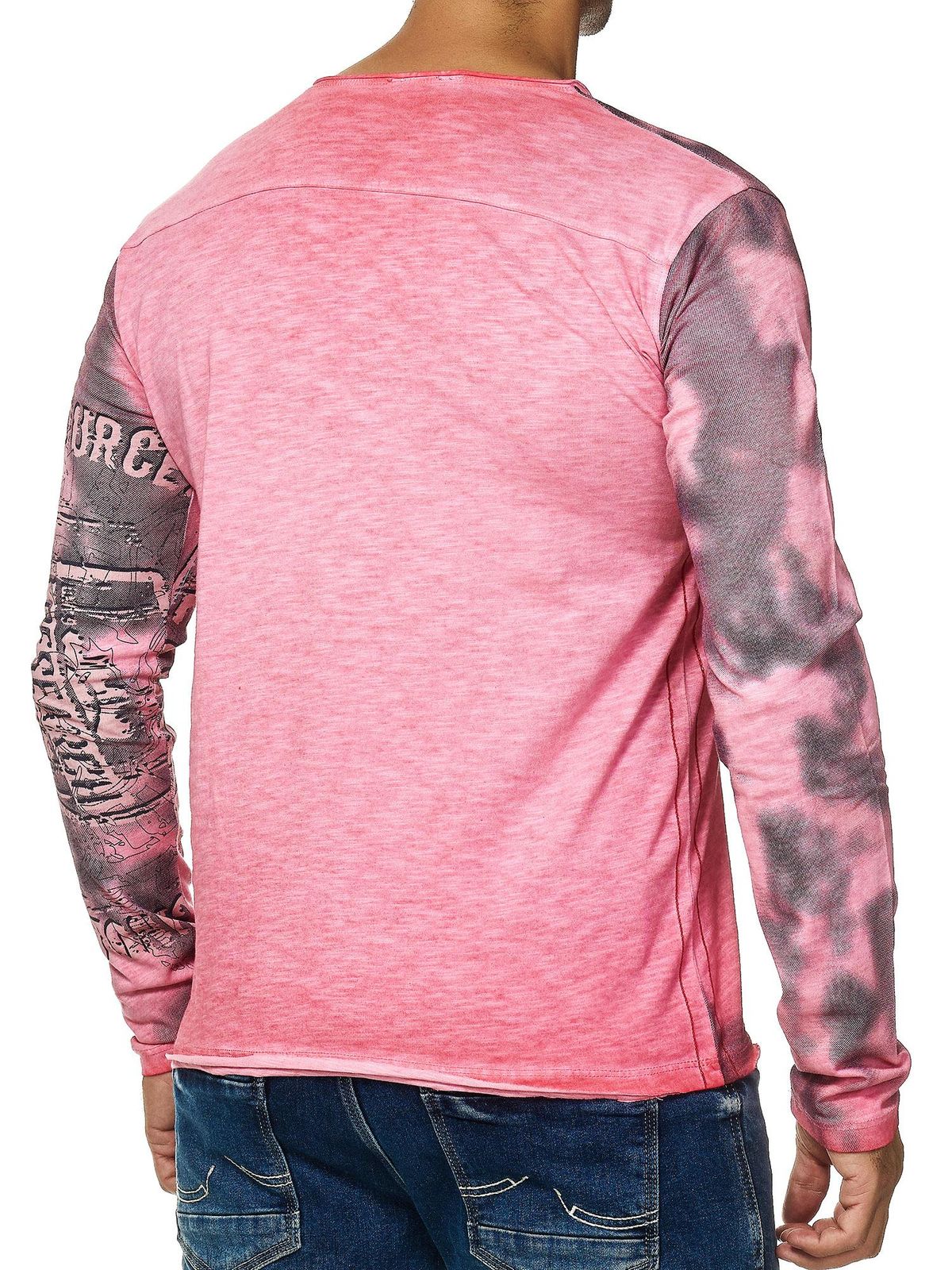 -93% Chemise homme à manches longues, col V, imprimé délavé, coupe ajustée, coloris corail 10135.