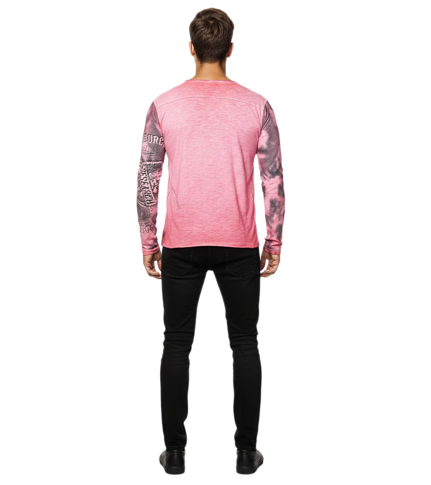 Chemise homme à manches longues, col V, imprimé délavé, coupe ajustée, coloris corail 10135.