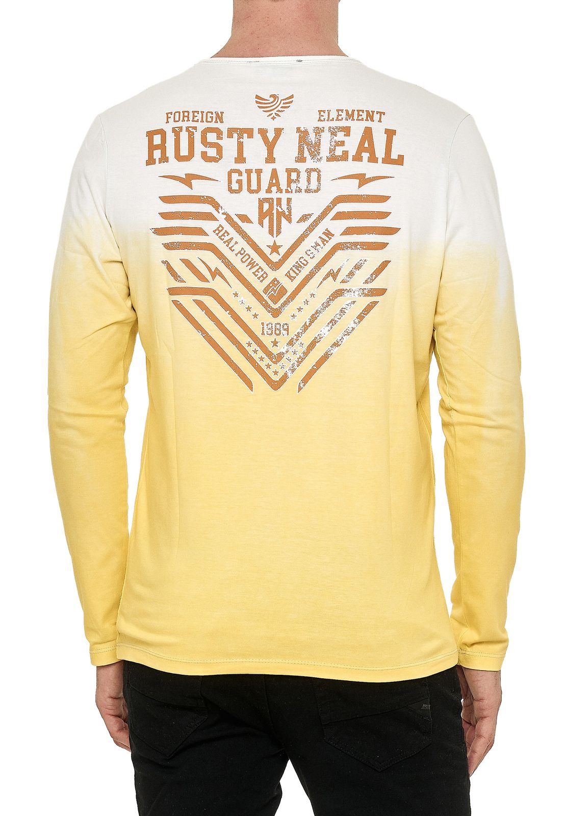Chemise homme à manches longues tendance, coupe ajustée, col rond, effet délavé, imprimé dégradé sur le devant, référence 10148 Jaune