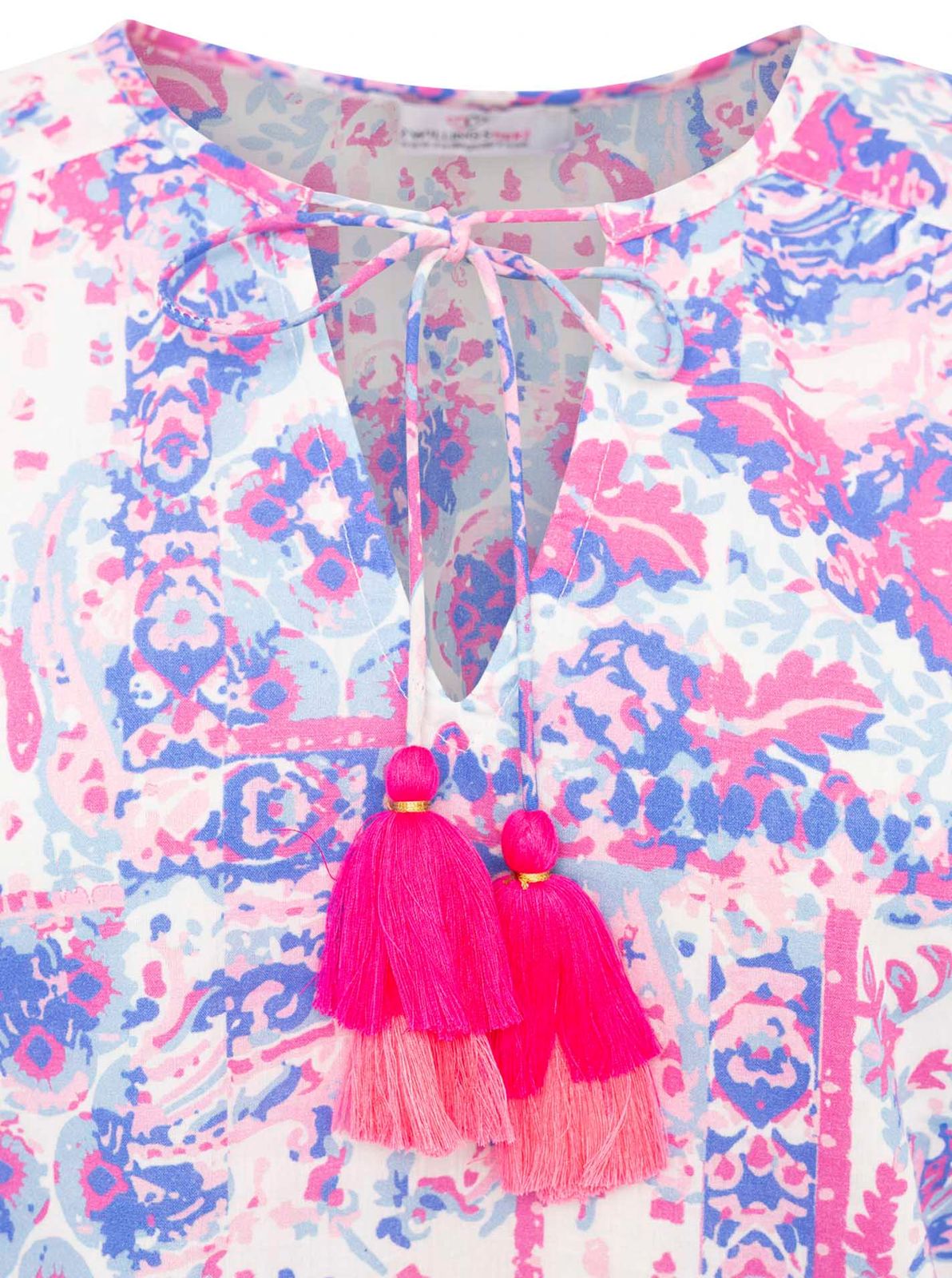 Chemisier en coton ZWILLINGSHERZ pour femme - Chemisier d'été à motif cachemire intégral 33214 Bleu/Rose/Blanc ou Vert/Rose/Blanc